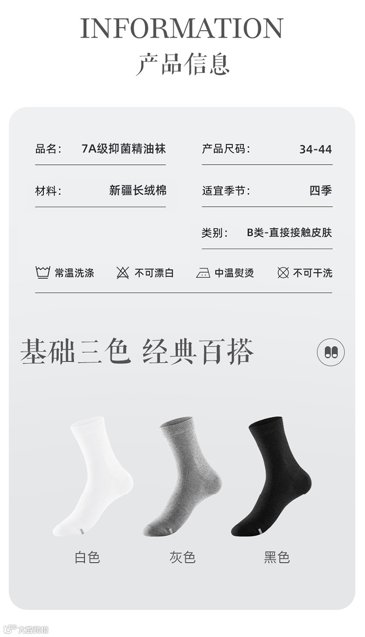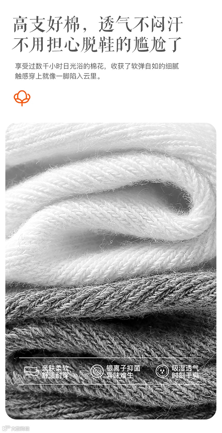 1.材质亲肤柔软细腻——吸汗性能很强大!清爽散热,人人必备好袜子,一年四季都可以穿极为好穿~抗菌除臭,避免尴尬,特别适合经常用脚的商务、运动人群,不易变形,顺滑不易起球,吸湿透气性好