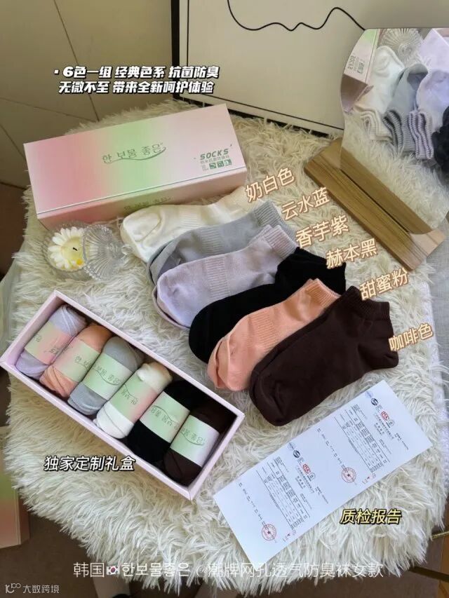 【新品补贴】韩国潮牌网孔透气防臭袜女袜6双6色/盒 原价:149元 粉丝群补贴价:79元