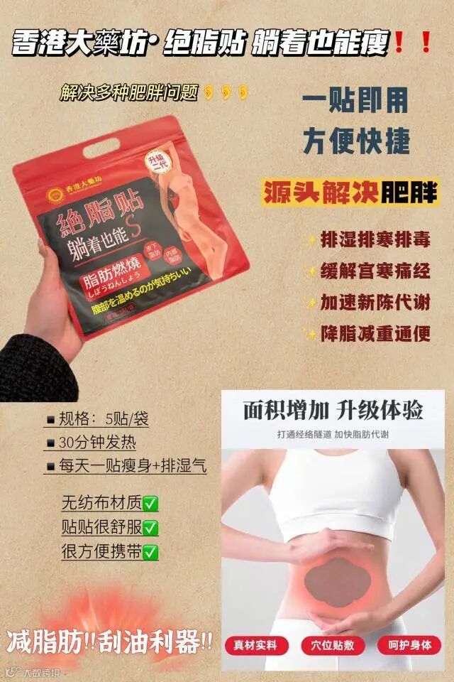 【乱卖2小时·5包包邮】香港大藥坊· 油切暴汗绝脂贴5贴/袋 原价:19元 粉丝群补贴价:9.9元
