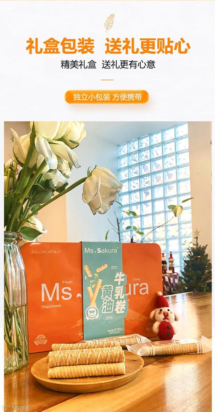 【新品补贴推荐】网红Ms.Sakura北海道黄油牛乳卷418克/盒+新年礼袋 原价:149元 粉丝群补贴价:86元