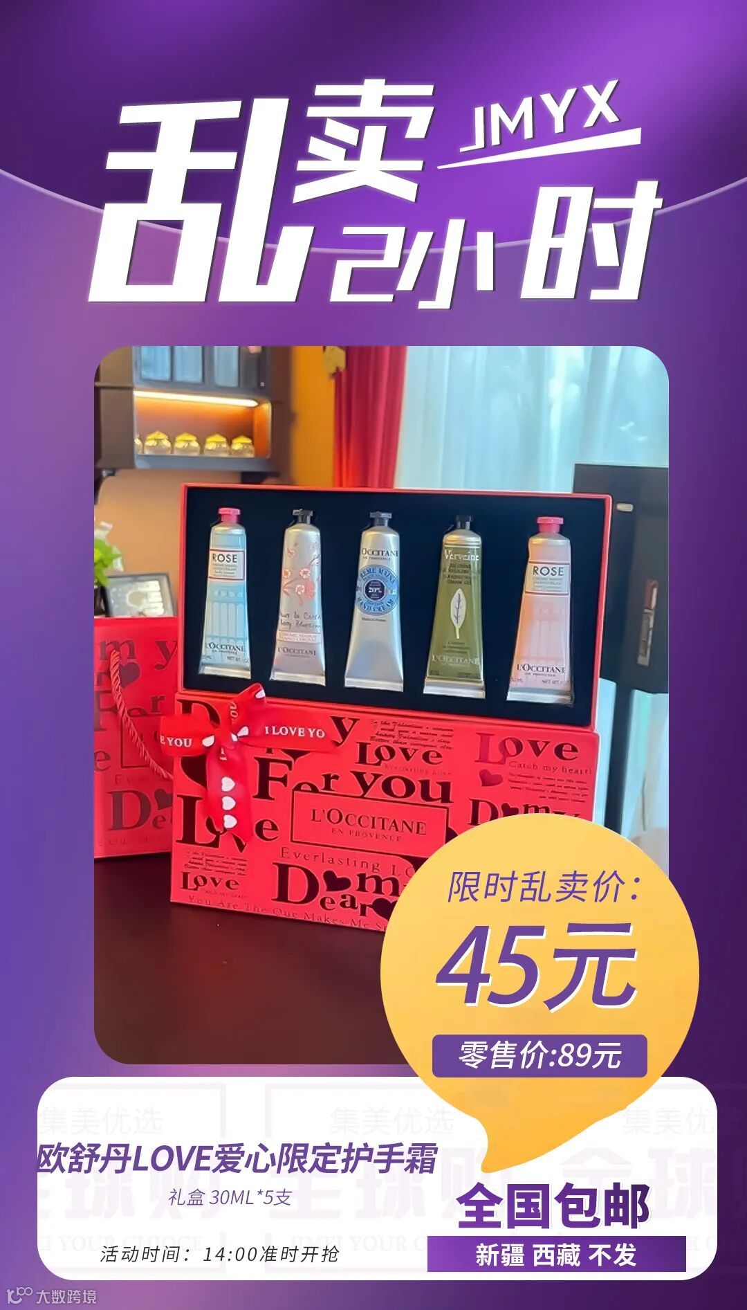 【乱卖2小时】2023新款欧舒丹LOVE爱心限定护手霜礼盒 30ml*5支 原价:89元 粉丝群补贴价:45元