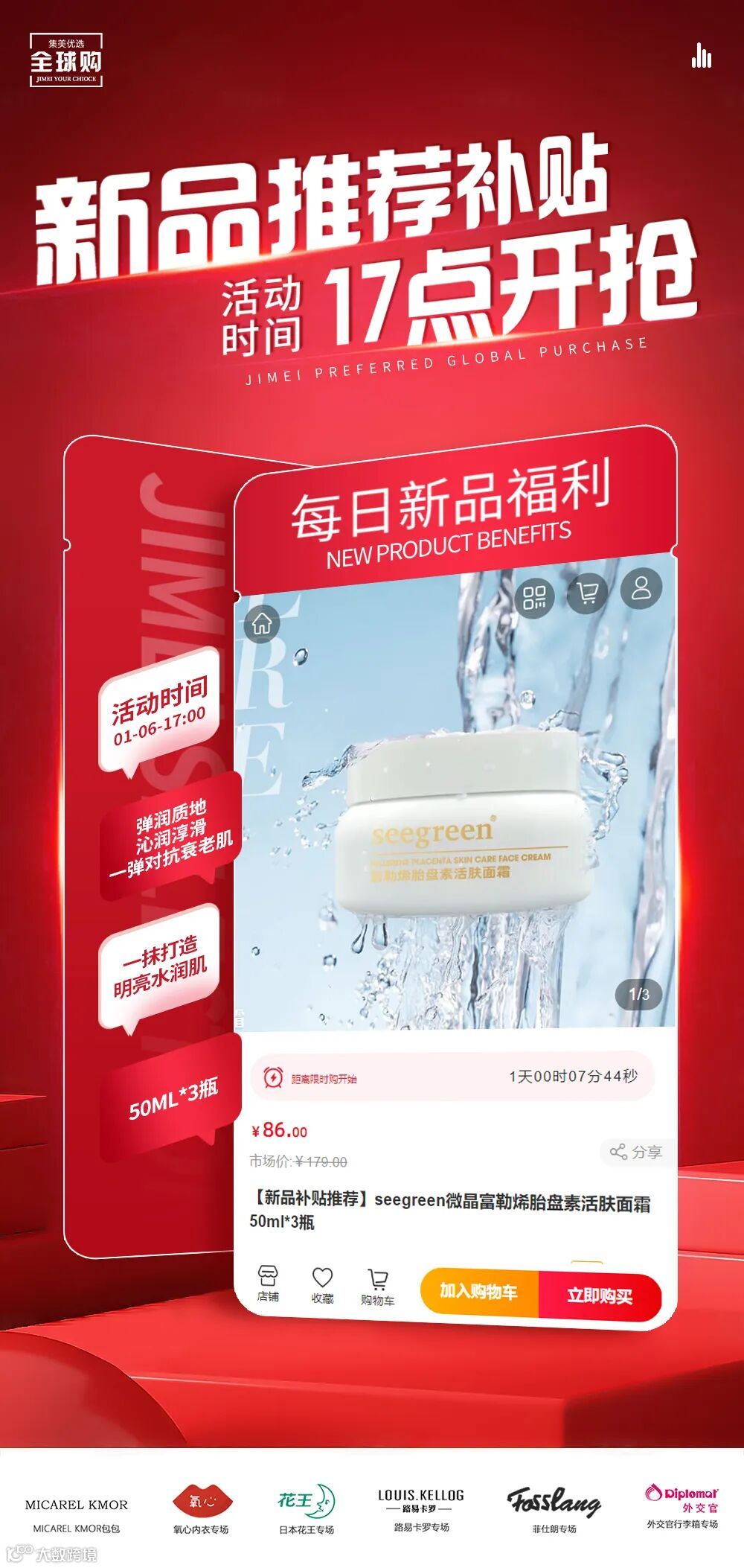 【新品补贴推荐】seegreen微晶富勒烯胎盘素活肤面霜50ml*3瓶 原价:179元 粉丝群补贴价:86元