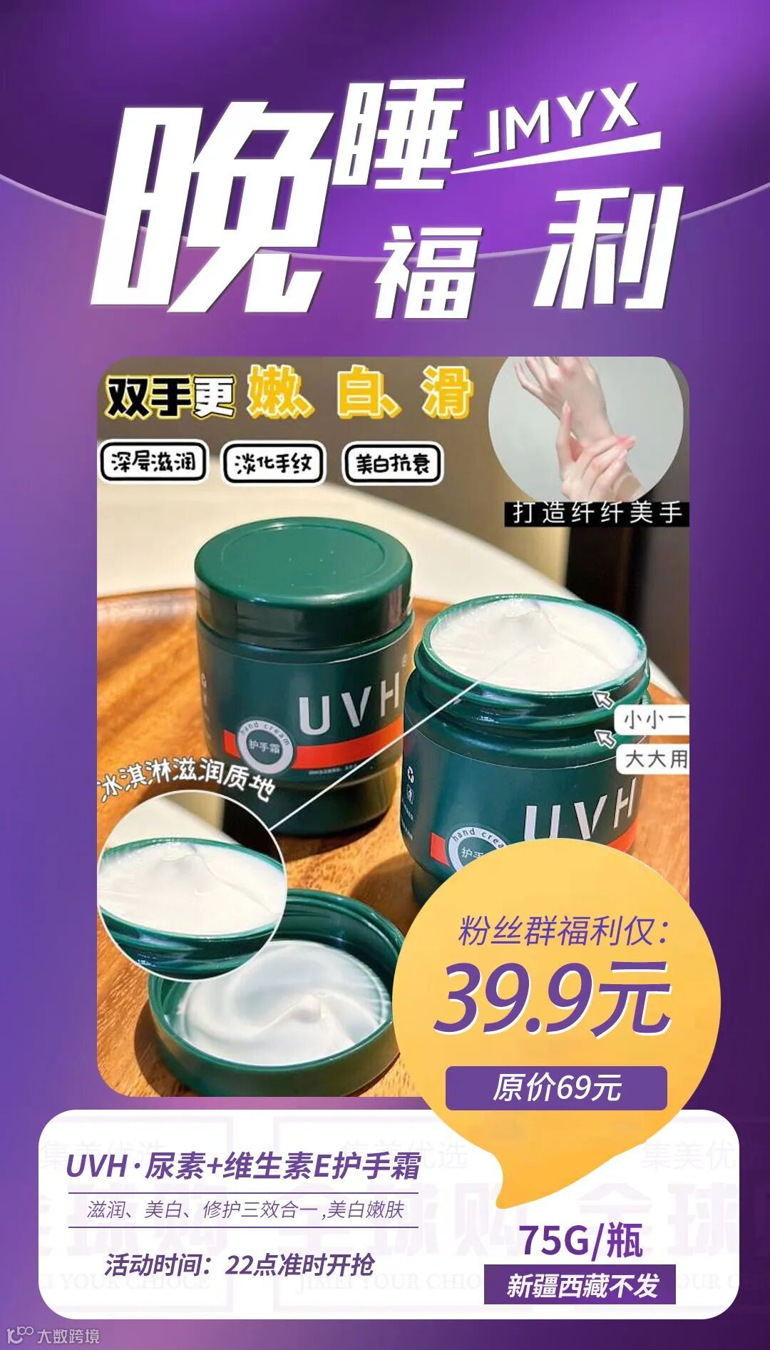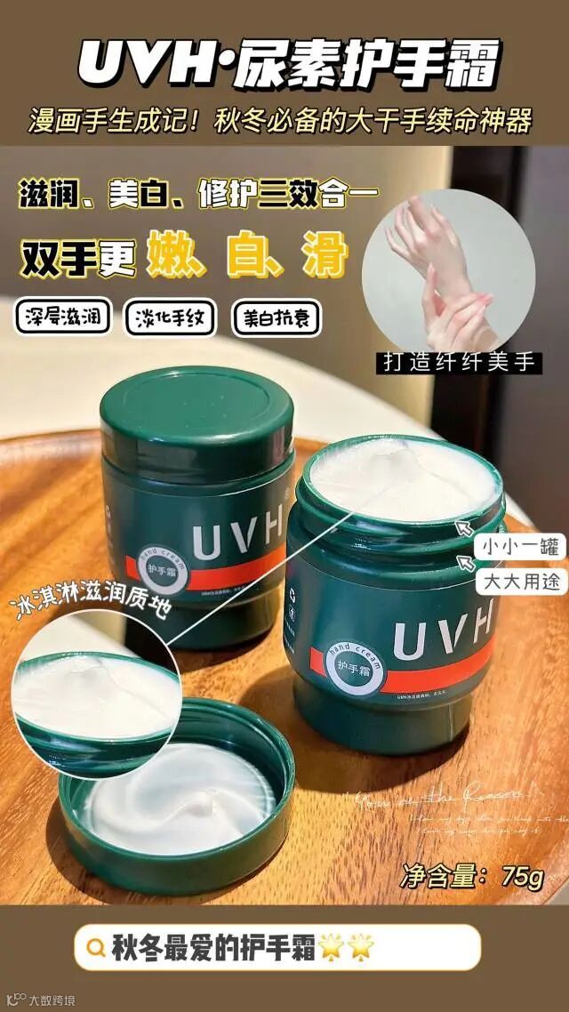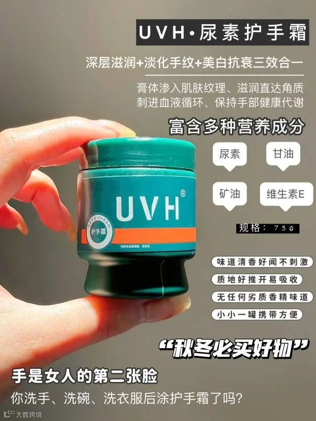 【晚睡福利】UVH·尿素+维生素E护手霜75g/瓶 滋润、美白、修护三效合一 原价:69元 粉丝群补贴价:39.9元