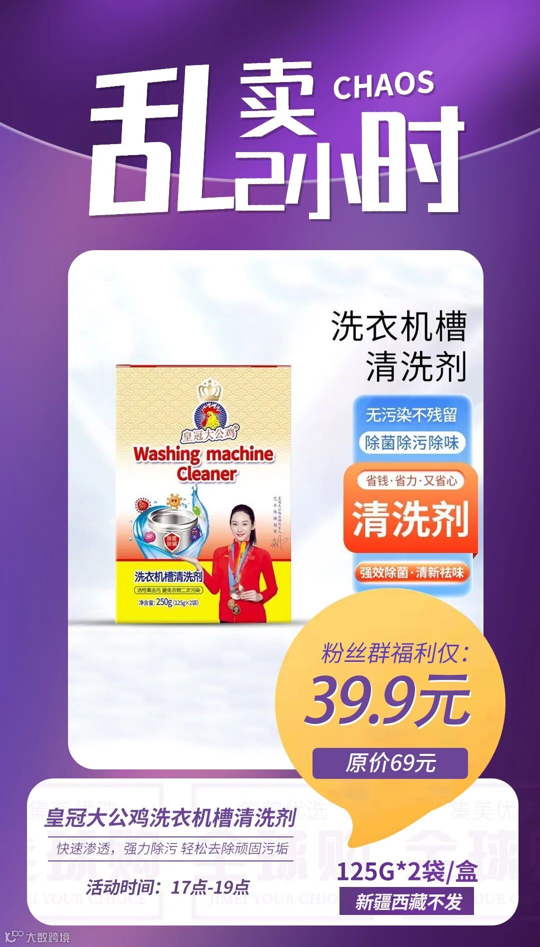 【乱卖2小时】皇冠大公鸡洗衣机槽清洗剂125g*2袋/盒 原价:69元 粉丝群补贴价:39.9元