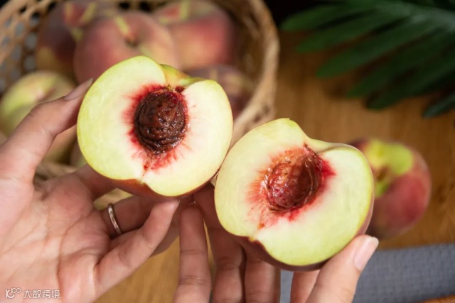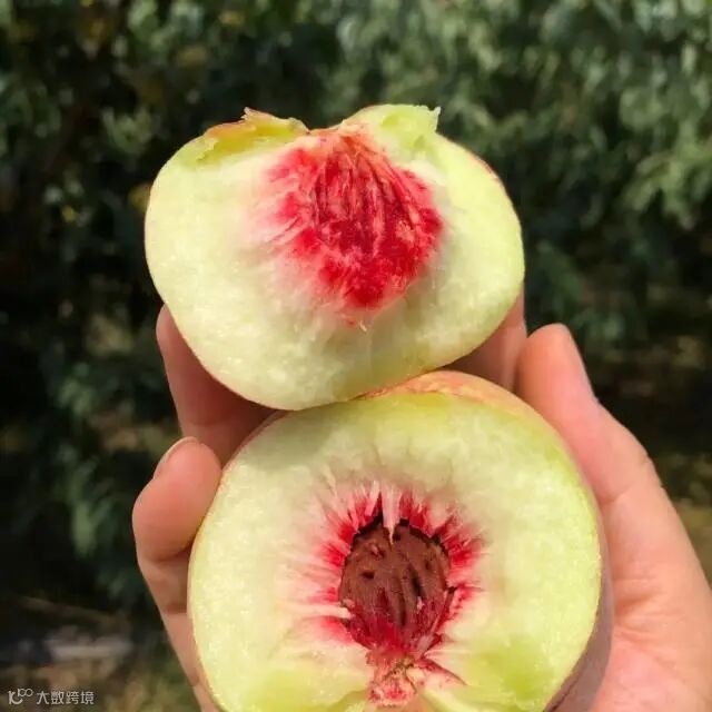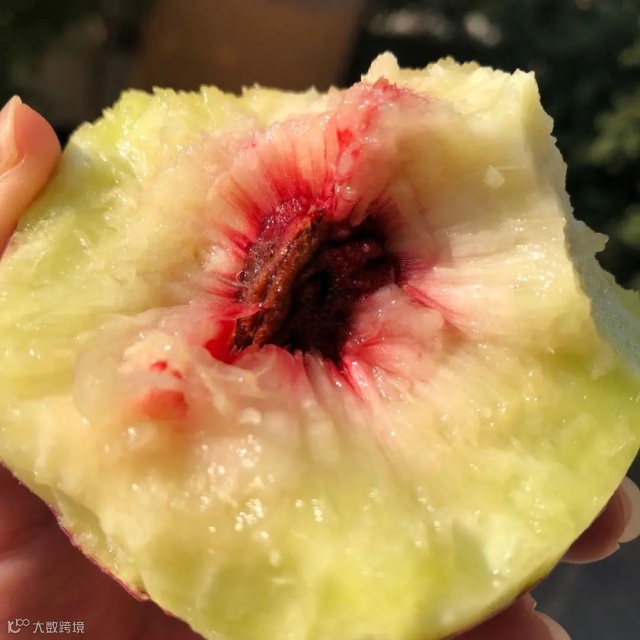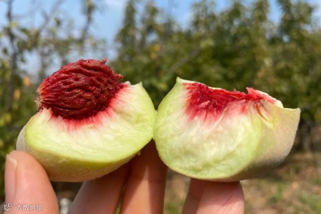 它是桃子里最老的传统品种,没有经过嫁接和改良,所以还是原始的绿肉红心。
