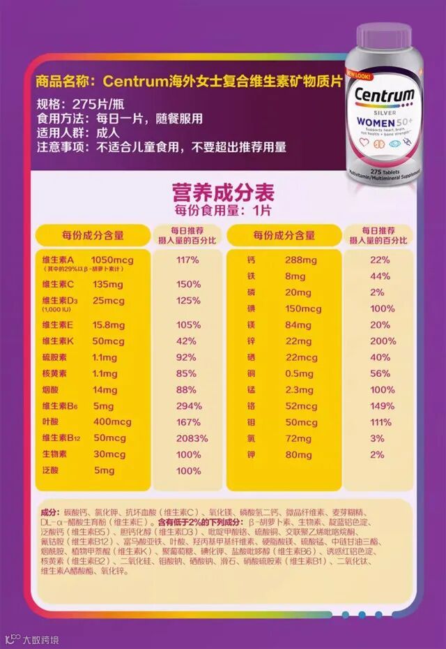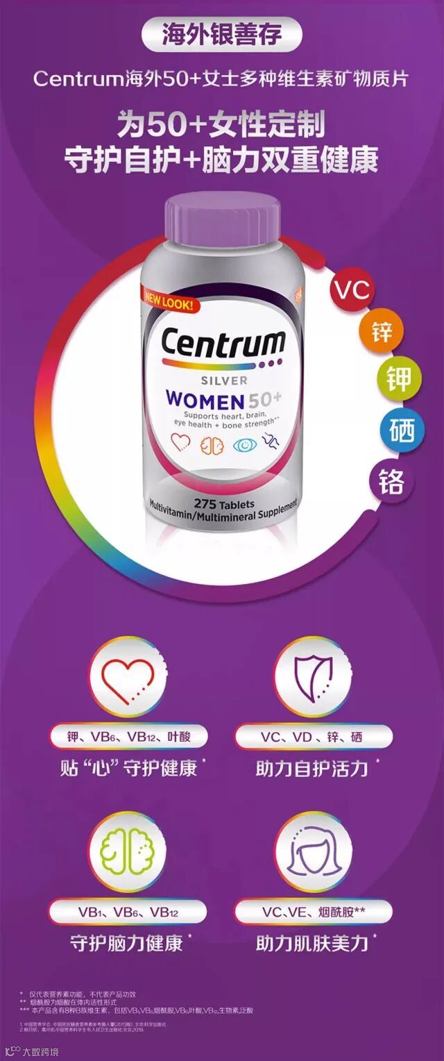 【粉丝群补贴】美国/Centrum善存复合维生素男士/女士50+ 275粒/瓶 原价:299元 粉丝群补贴价:199元