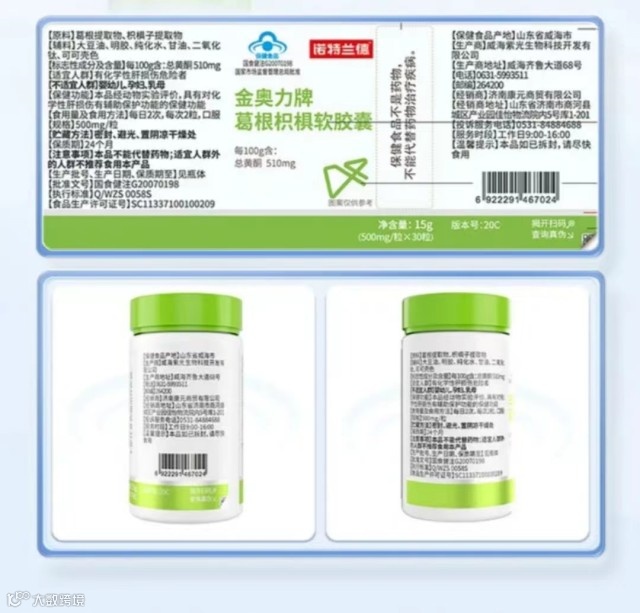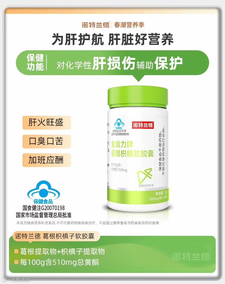 【粉丝群补贴·买2送1】诺特兰德金奥力牌葛根枳椇软胶囊15g(500mg×30粒) 原价:69元 粉丝群补贴价:29.9元