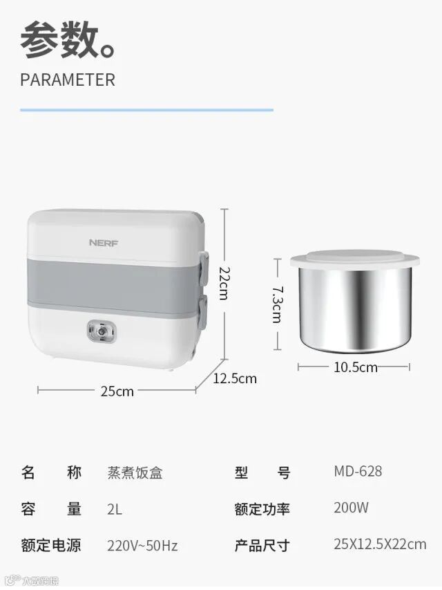 【粉丝群补贴】NERF拉尔弗MD-628电热蒸煮饭盒 原价:239元 粉丝群补贴价:119元