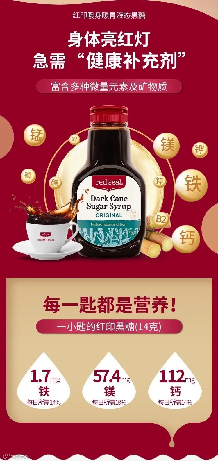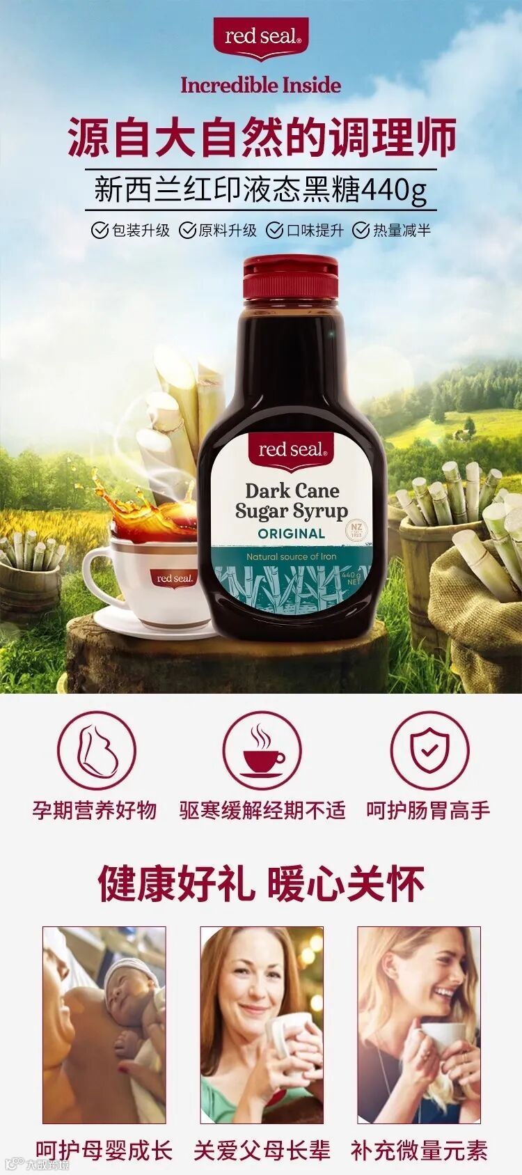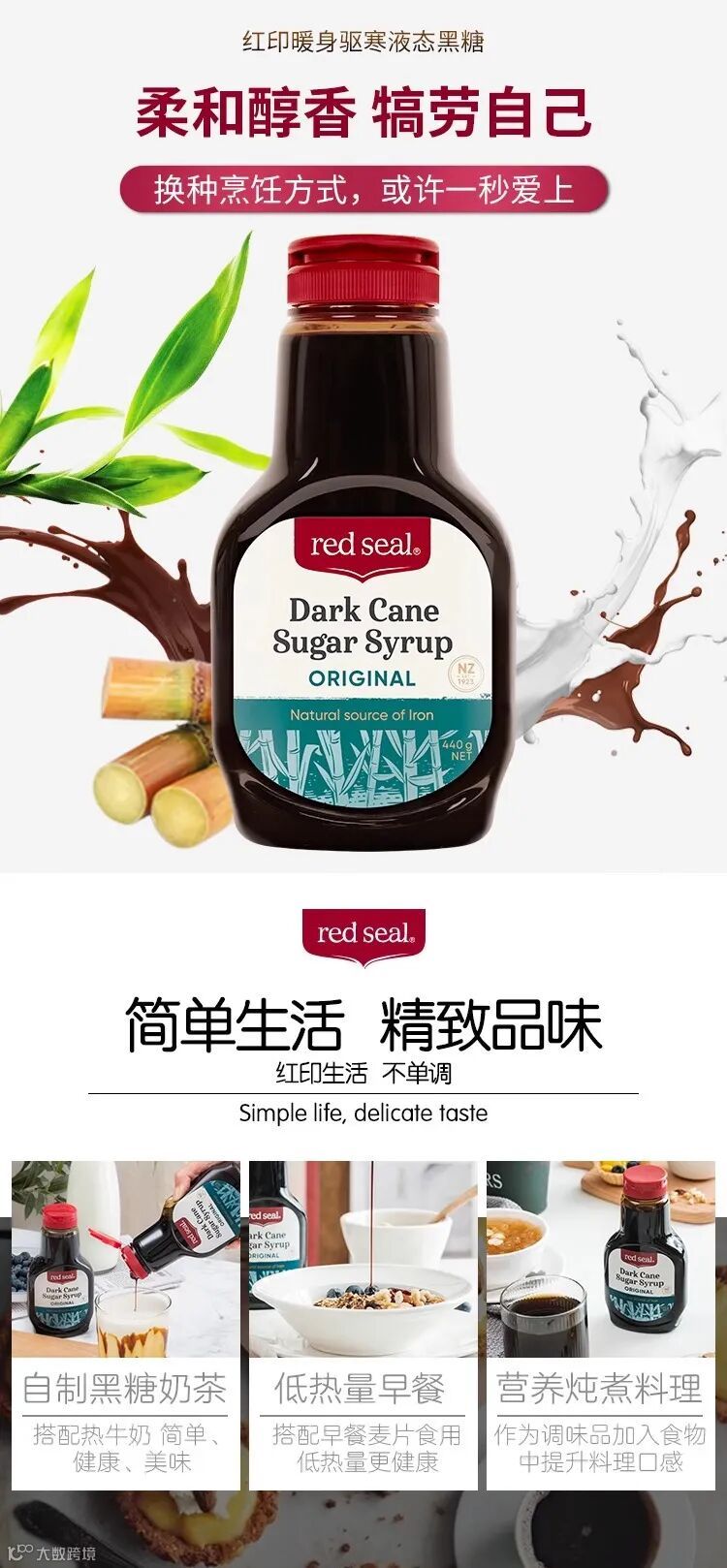 【晚睡福利】新西兰 red seal 红印黑糖440g/瓶(买3瓶送3条试用装) 原价:79元 粉丝群补贴价:52.5元起