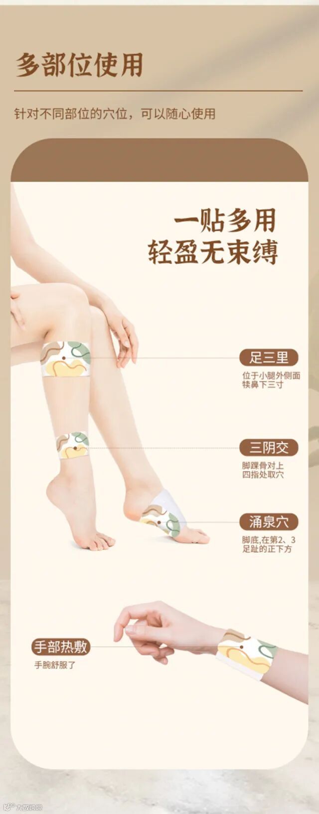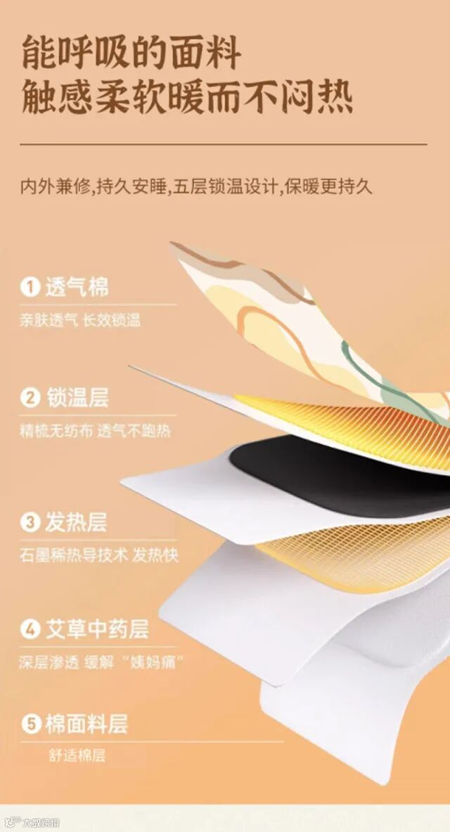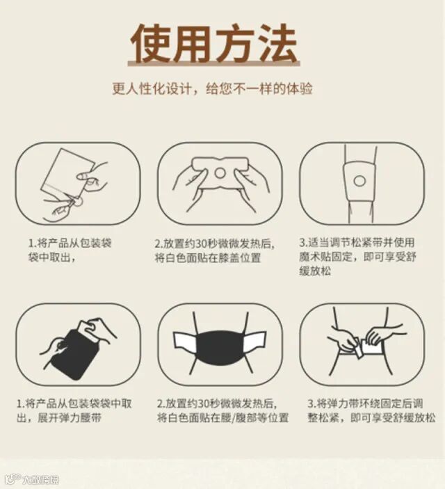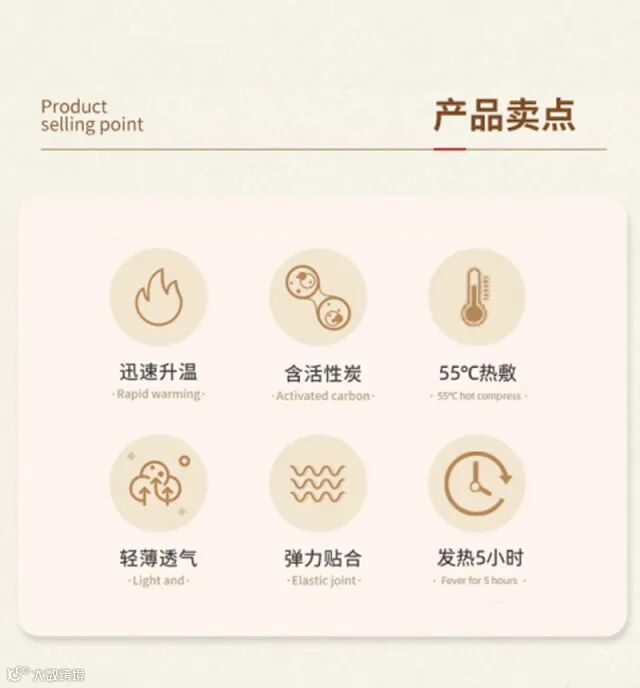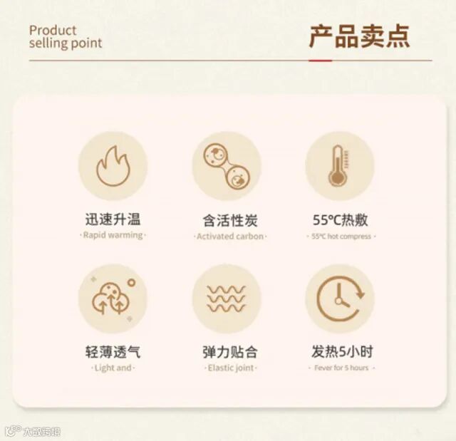 【产品特点】:采取活性碳55°热敷发热5小时360°贴合人体设计形式全方位养护您的身体,轻薄透气、弹力贴合,有通经活络,祛除阴寒,消肿散结,回阳救逆等作用