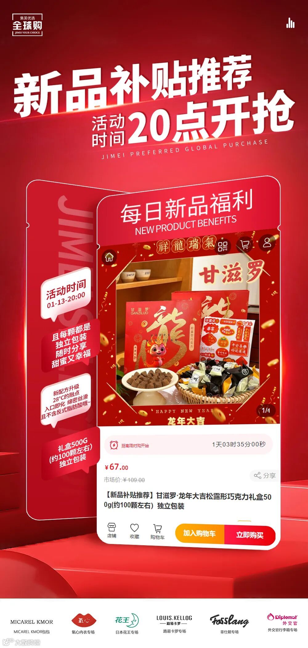 【新品补贴推荐】甘滋罗·龙年大吉松露形巧克力礼盒500g(约100颗左右)独立包装 原价:109元 粉丝群补贴价:67元