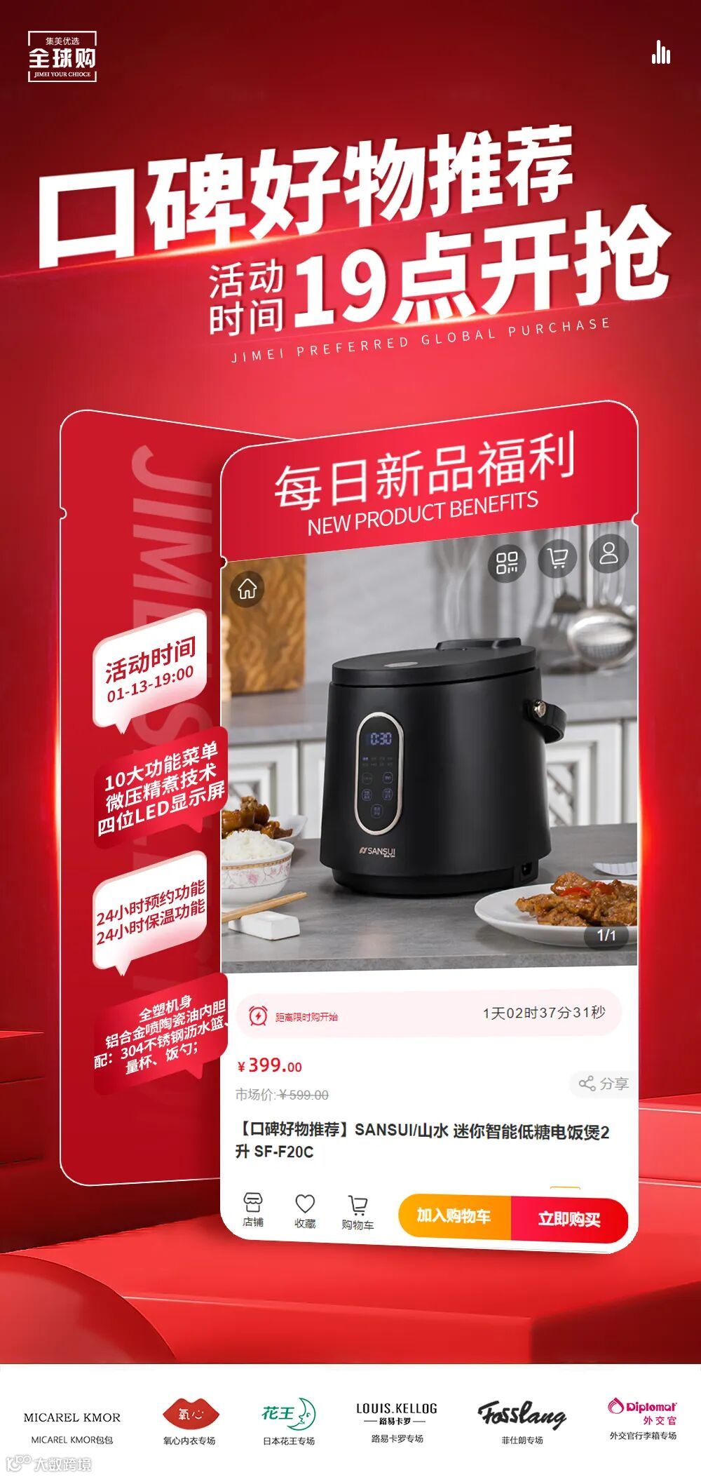 【口碑好物推荐】SANSUI/山水 迷你智能低糖电饭煲2升 SF-F20C 原价:599元 粉丝群补贴价:399元