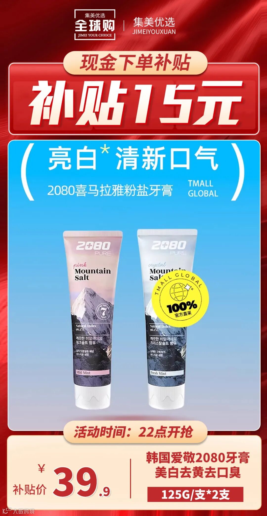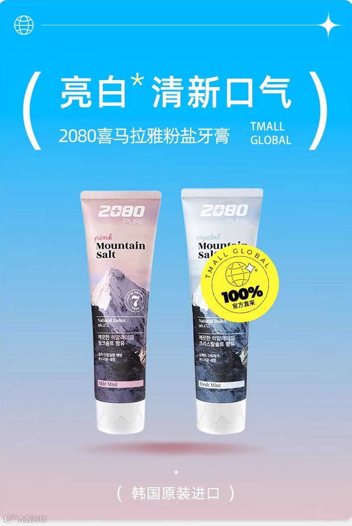 【晚睡福利】韩国爱敬2080牙膏125g/2支 美白去黄去口臭清洁防蛀锁白去牙渍 原价:59元 粉丝群补贴价:39.9元