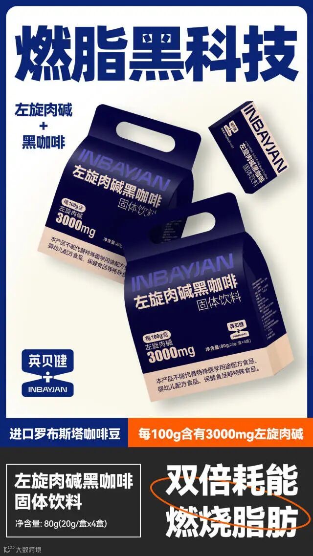 【爆款返场】英贝健左旋肉碱黑咖啡20g*4盒(2g*10袋/盒) 原价:89元 粉丝群补贴价:68.6元
