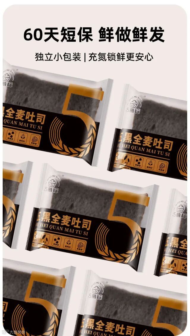 【粉丝群补贴】巧慕标五黑全麦吐司面包30包/箱 原价:59元 粉丝群补贴价:29.9元