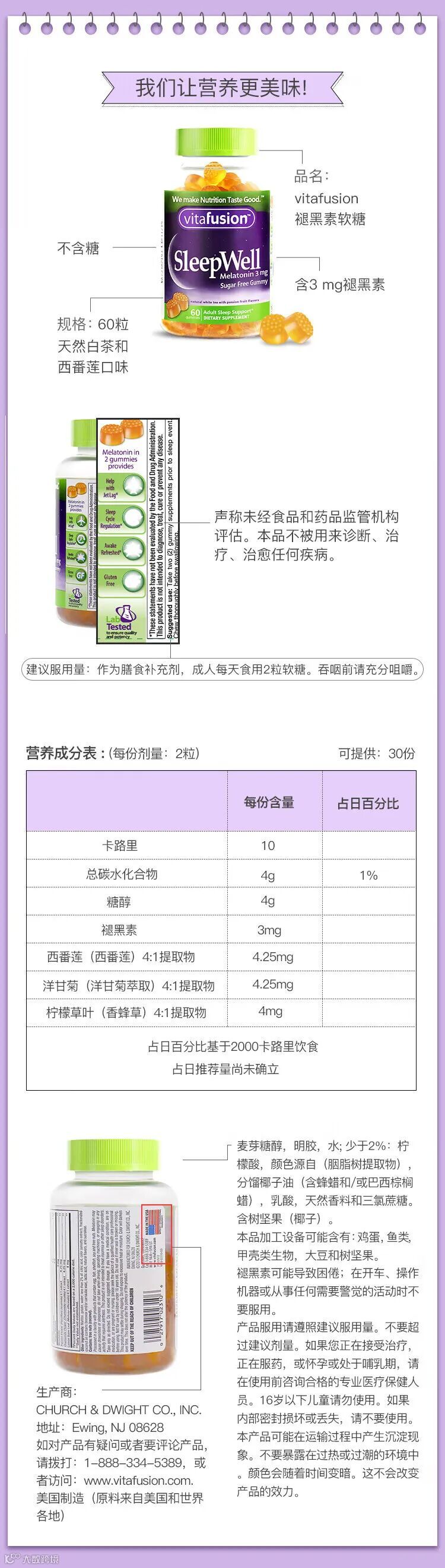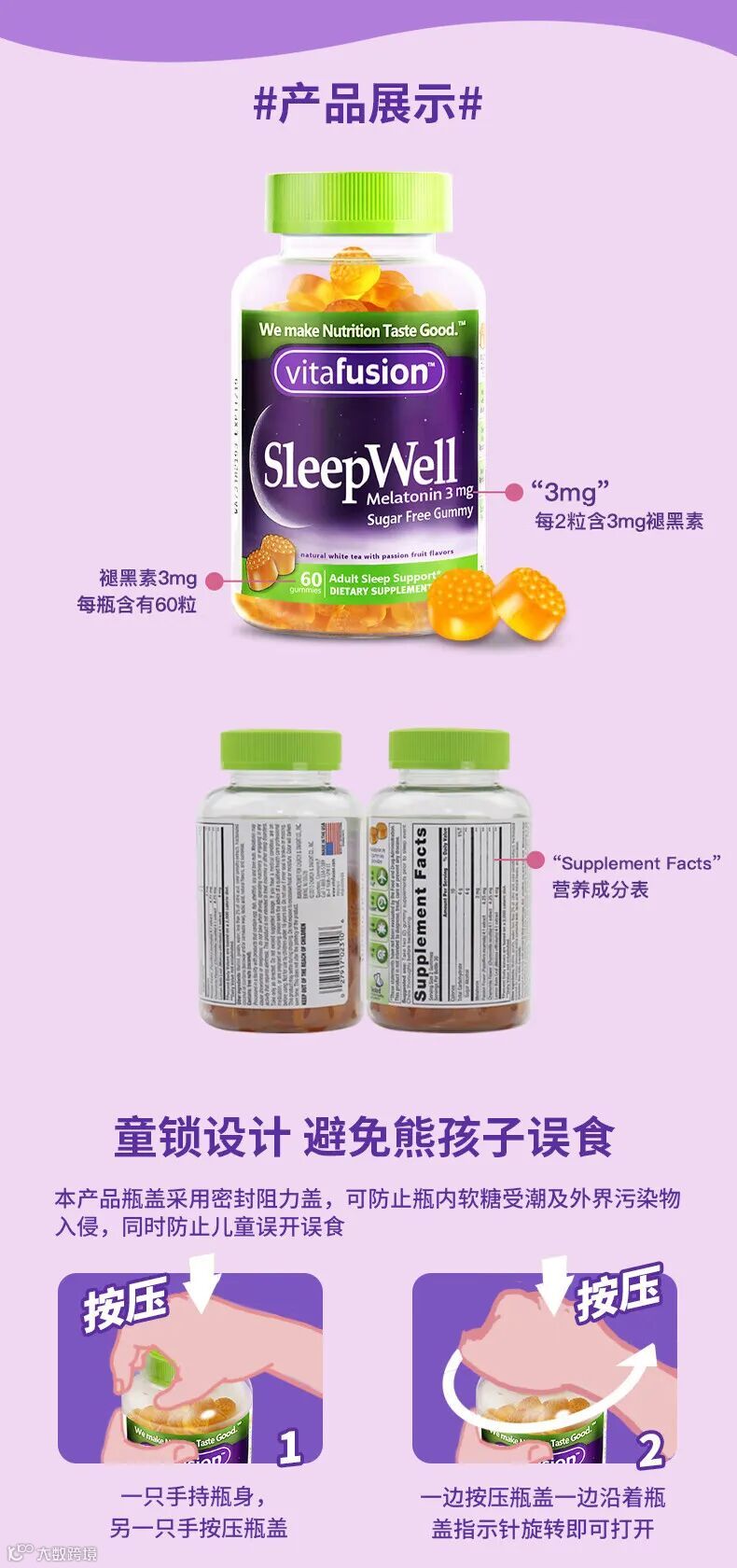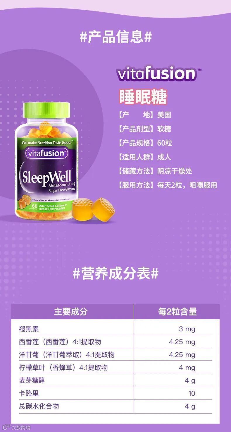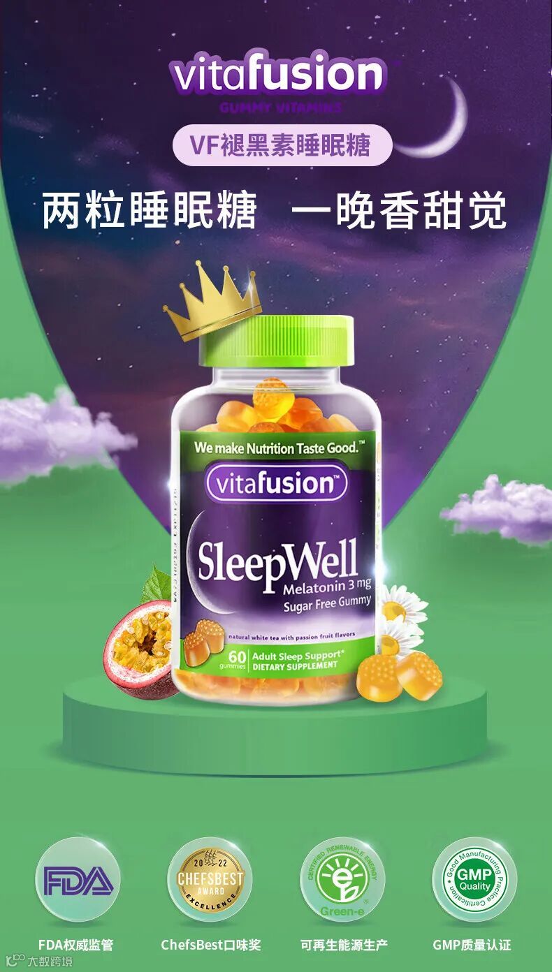【粉丝群补贴】美国进口Vitafusion SleepWell褪黑素成人软糖睡眠糖60粒(新版) 原价:119元 粉丝群补贴价:79.9元
