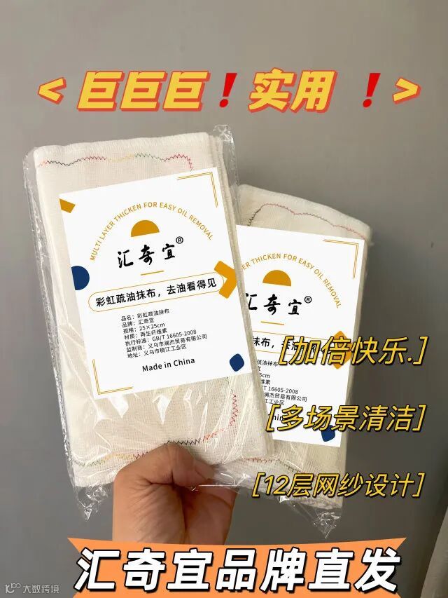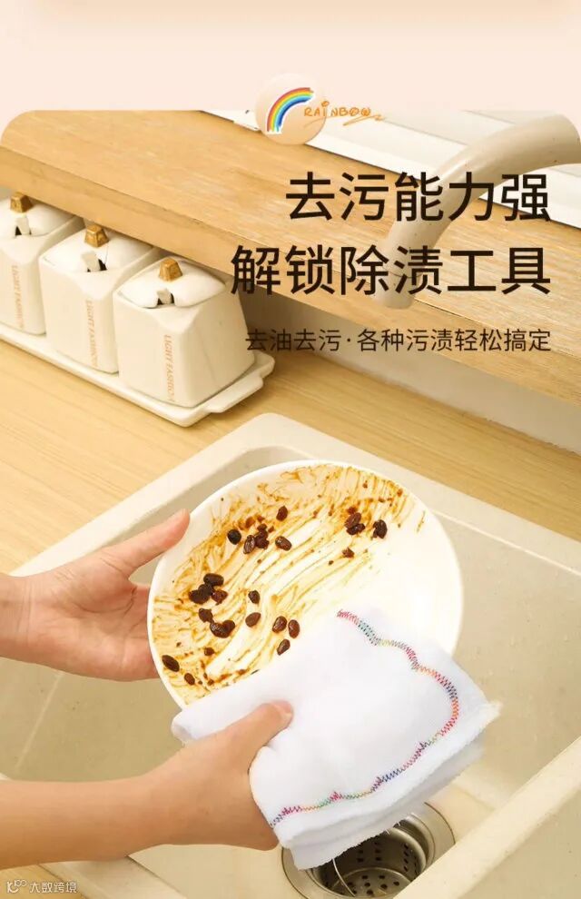 【口碑好物推荐】汇奇宜12层加厚彩虹疏油抹布5片装/袋*2袋 原价:69元 粉丝群补贴价:39.9元