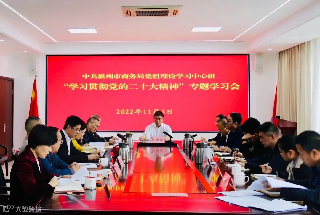 11月3日下午,市商务局党组理论学习中心组举行“学习贯彻党的二十大精神”专题学习会,重点学习党的二十大报告中关于“构建新发展格局、着力推动高质量发展”重要思想,奋力开创温州商务经济高质量发展新局面。