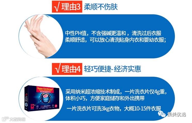 洗衣片活性物含量高达60%,分子更小,清洁更深入,洁净力更强。