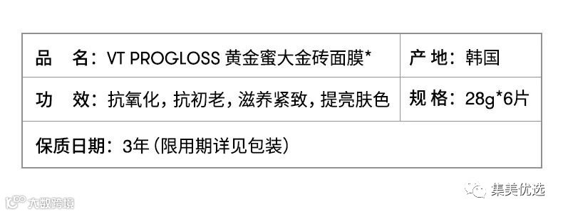 【大牌团购】韩国 VT 薇缔 黄金蜜蜂蜜面膜6片 团购价:89元 VIP /黑卡M1会员 福利补贴价:85元