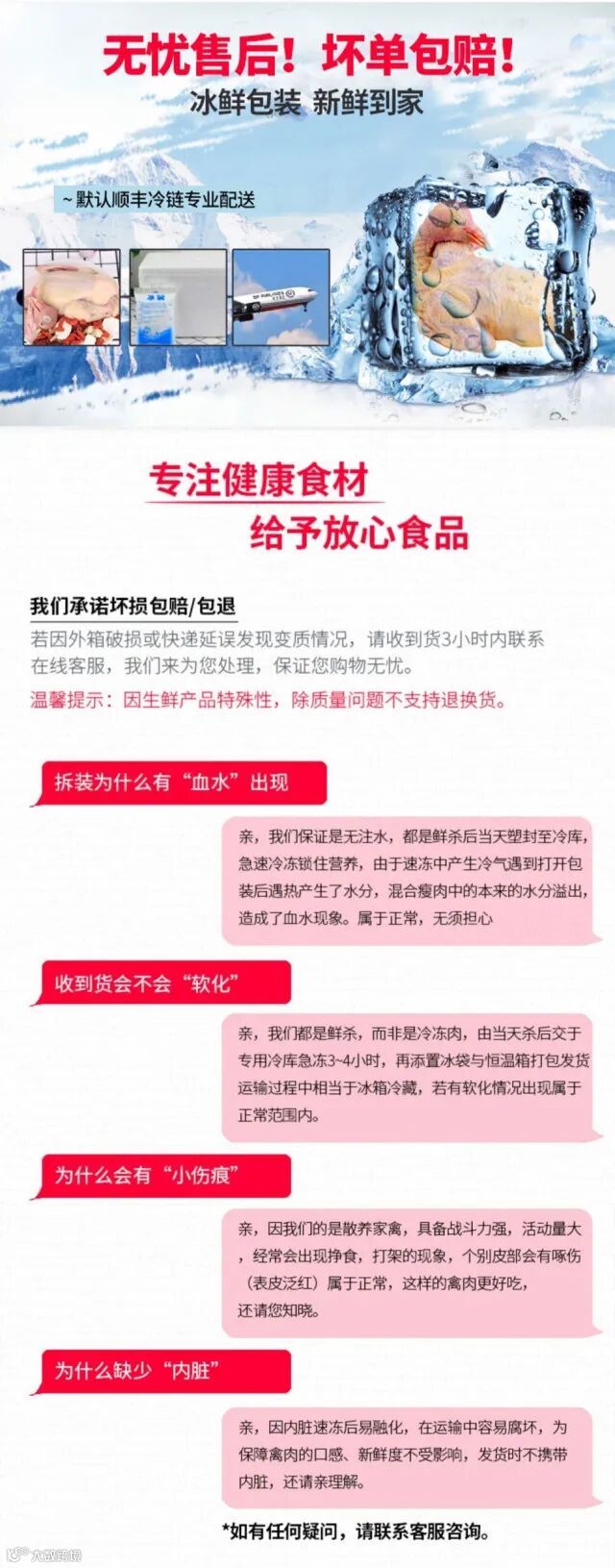 1、本产品为生鲜冷冻品,收到接货通知后请及时收货,不要拖延。收到货后及时开箱检,