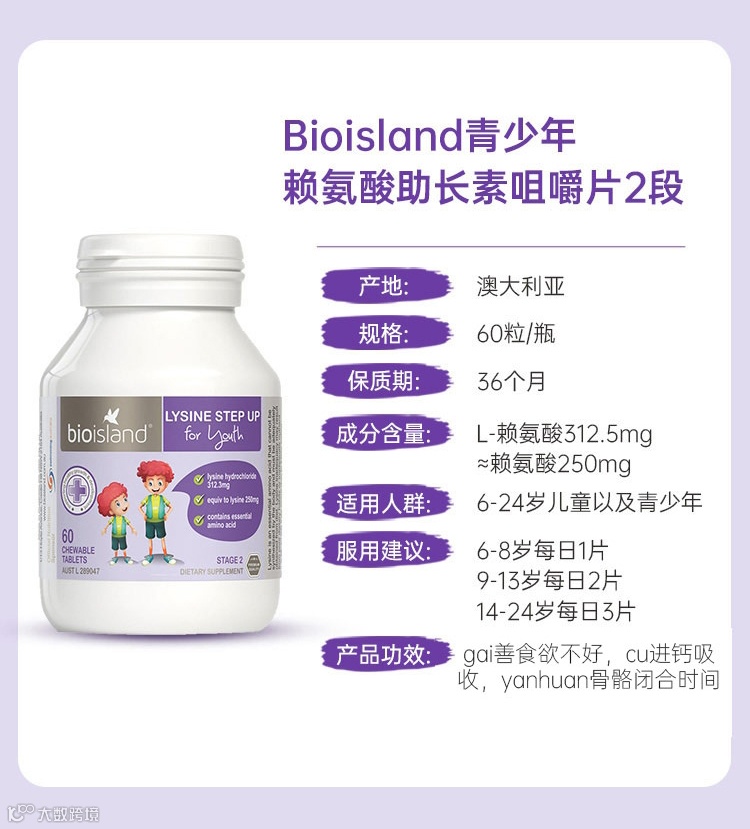 澳洲 Bio island 儿童青少年黄金助长素1段150ml/2段60粒 可选