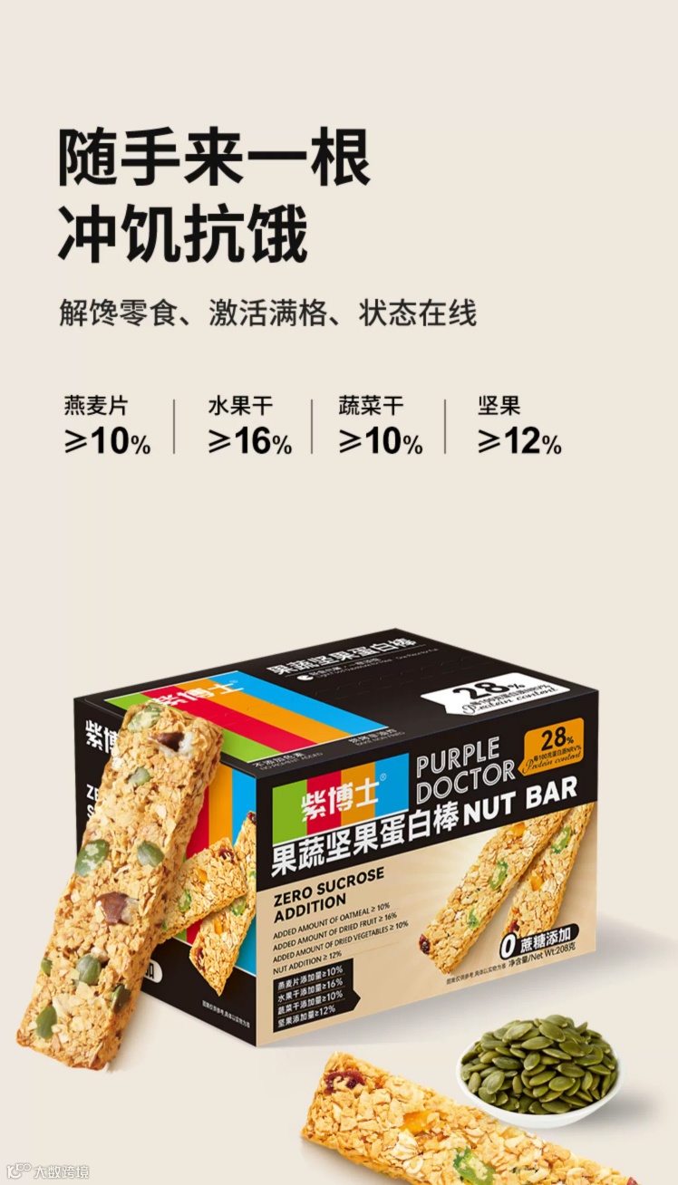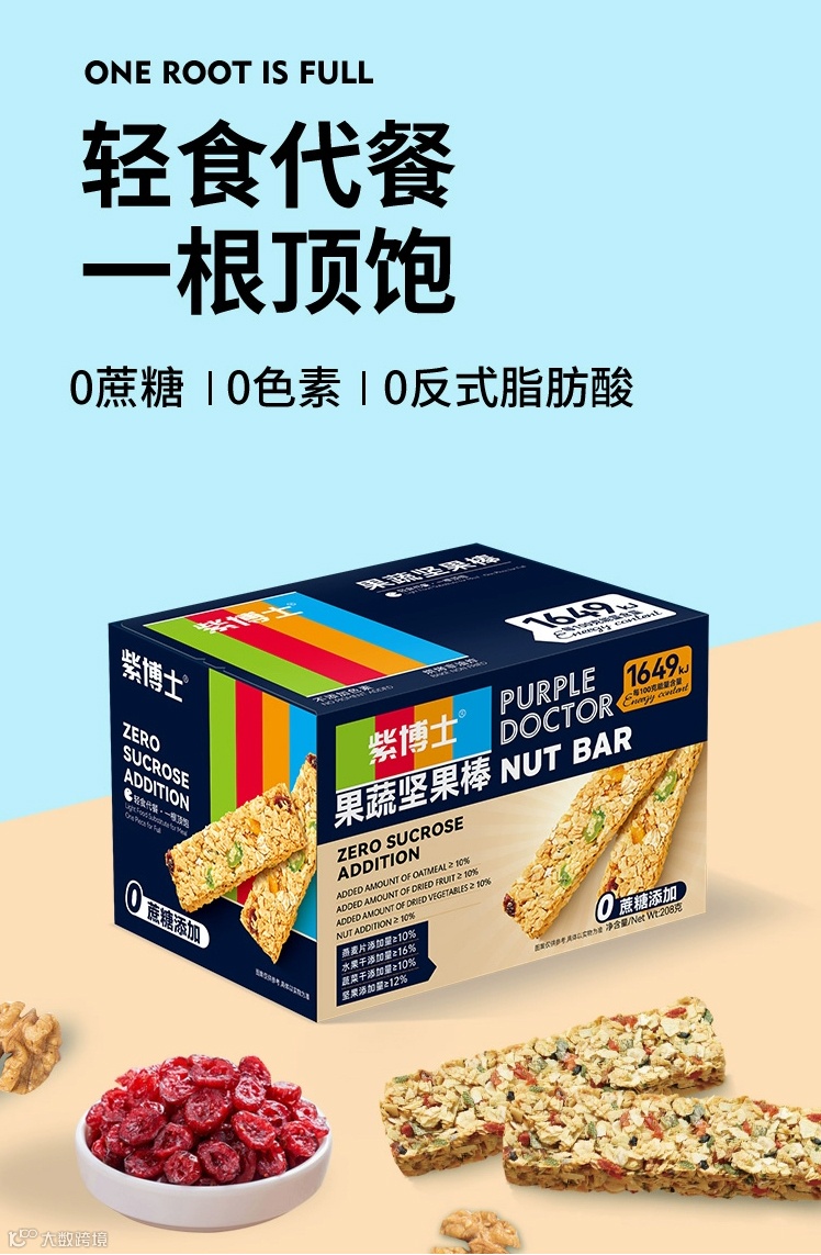 【买二送一】紫博土bAT STICK果蔬坚果蛋白棒0蔗糖208g/1箱