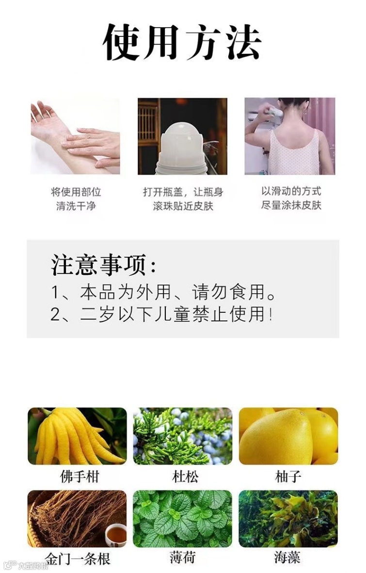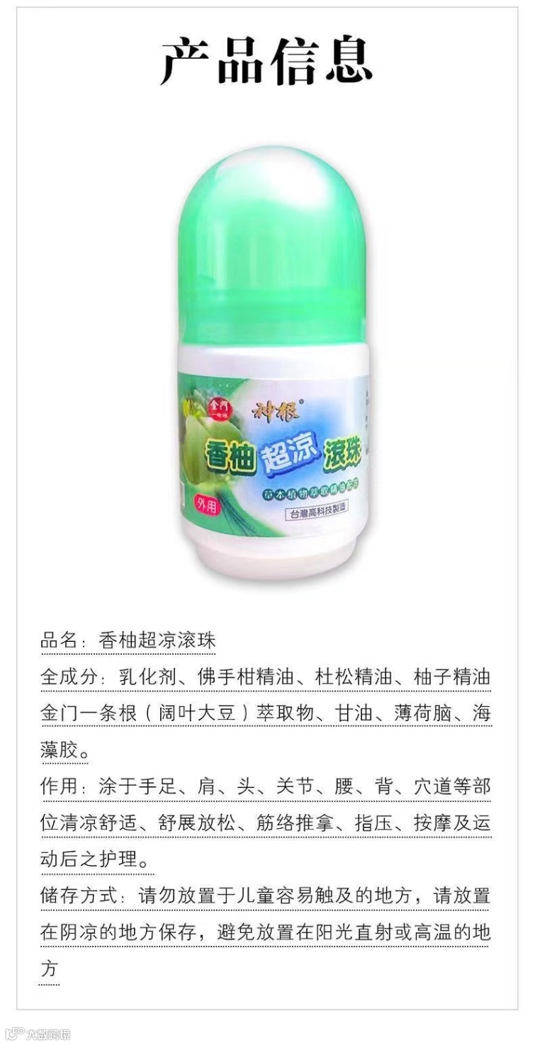 台湾金门一条根香柚超凉滚珠精油走珠40ml/瓶