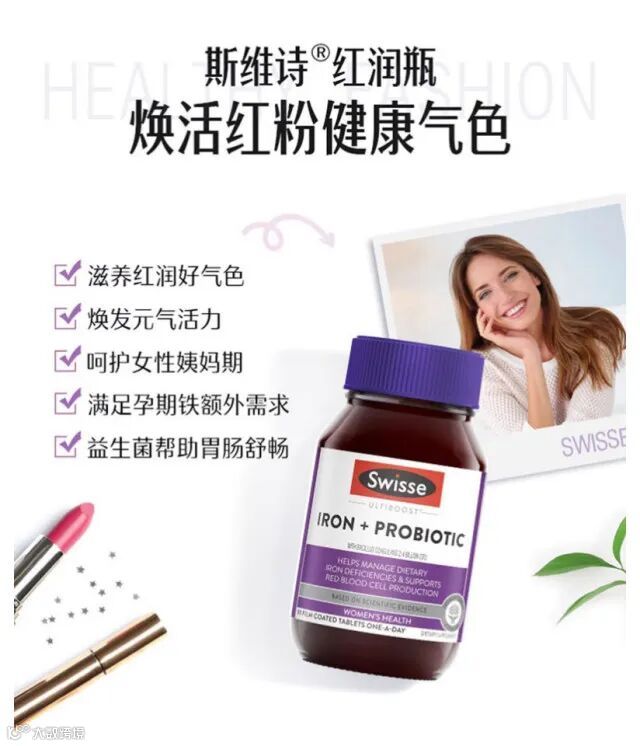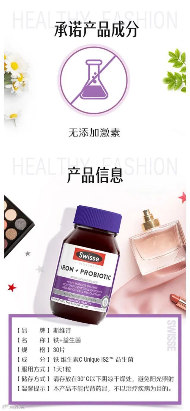 【粉丝群补贴】澳洲Swisse补铁片补铁补血贫血女性孕妇哺乳期适用补铁剂益生菌 30粒 原价:189元 粉丝群补贴价:129元