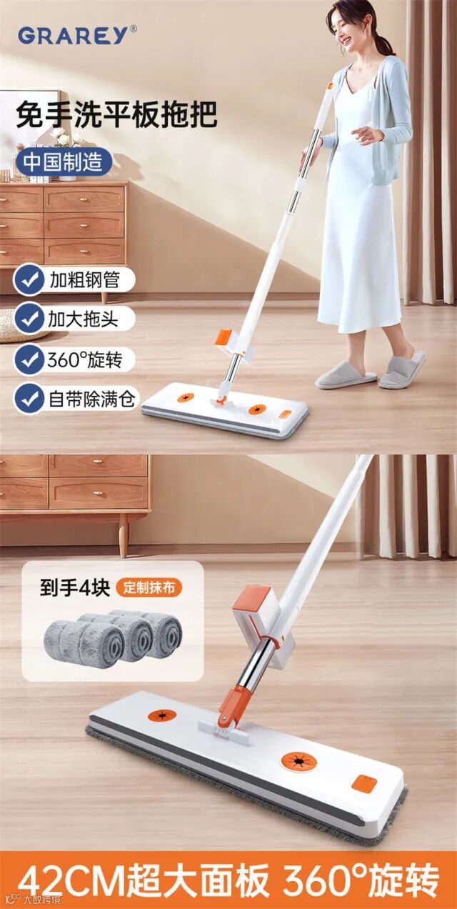 【粉丝群补贴】GRAREY免手洗平板拖把(1把拖把+2块布) 原价:79元 粉丝群补贴价:49.9元
