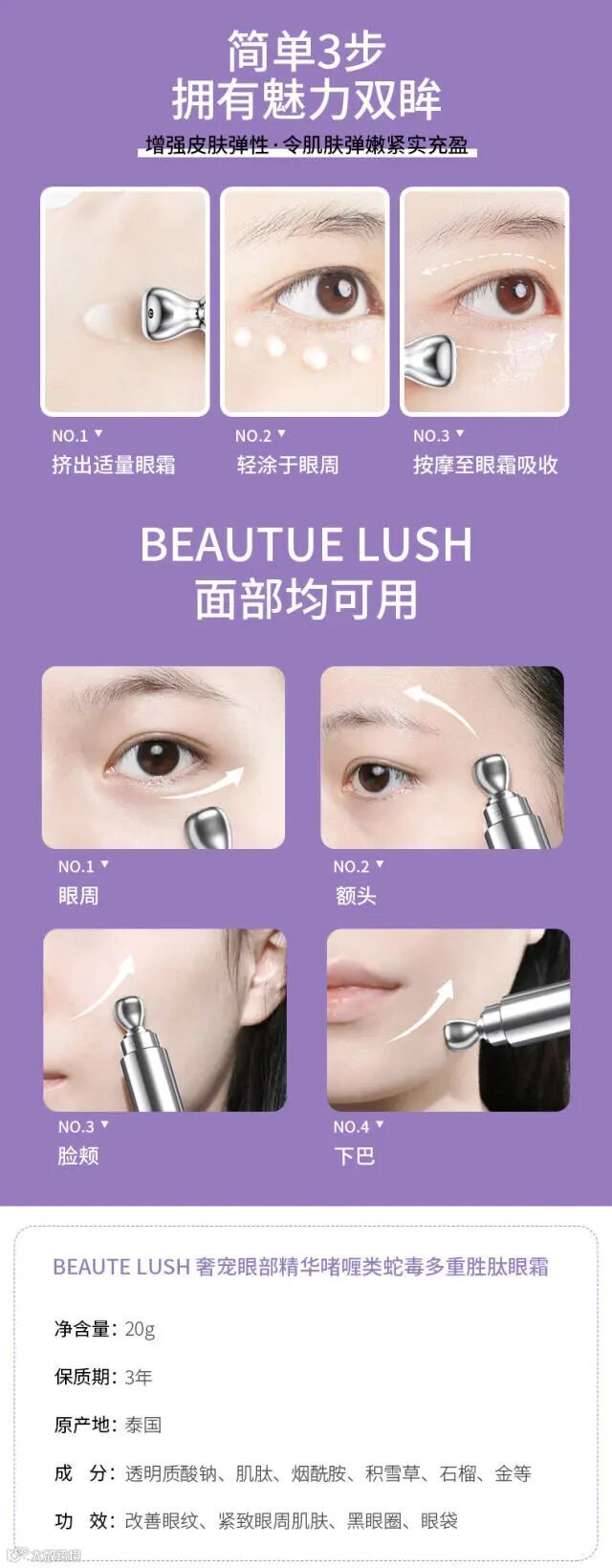 【粉丝群补贴·买一送一】泰国Beaute Lush奢润眼部精华啫喱类蛇毒多重胜肽震动按摩眼霜20g/支 原价:299元 粉丝群补贴价:119元