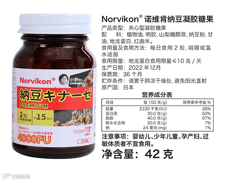 【粉丝群补贴】Norvikon 诺维肯纳豆凝胶8000FU 30粒/瓶*2瓶 原价:399元 粉丝群补贴价:199元