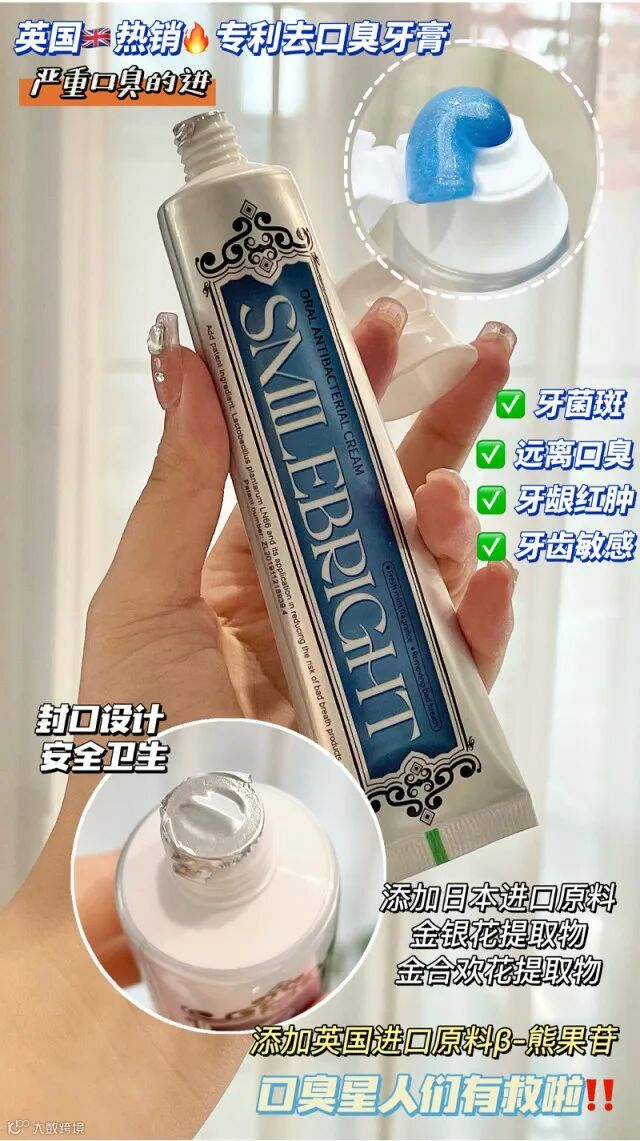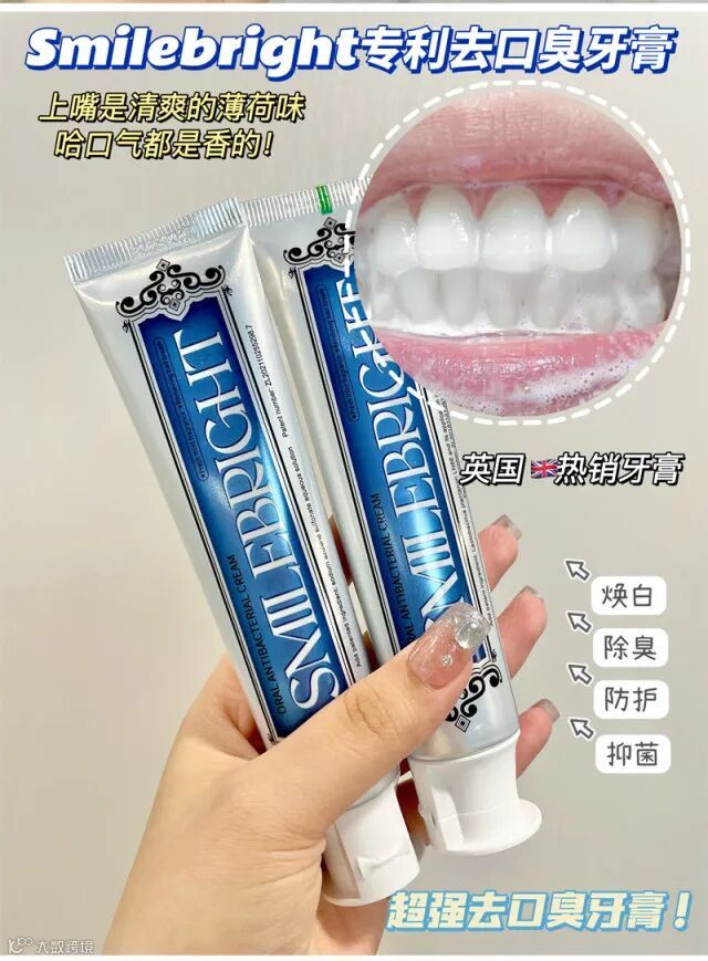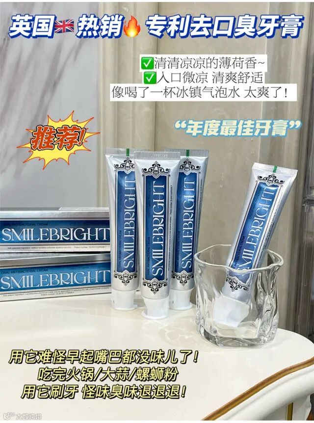 【粉丝群补贴·3支包邮】英国smilebright专利去口臭牙膏 原价:39元 粉丝群补贴价:19.9元