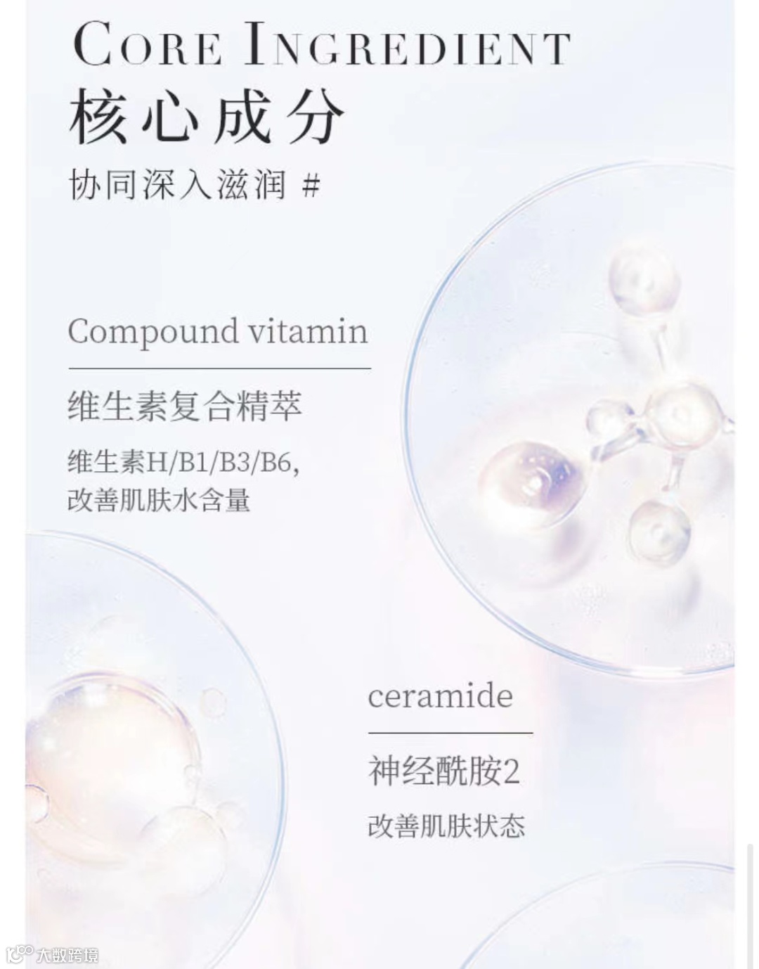 维生素复合精粹——维生素H、B1、B3、B6,改善肌肤水含量