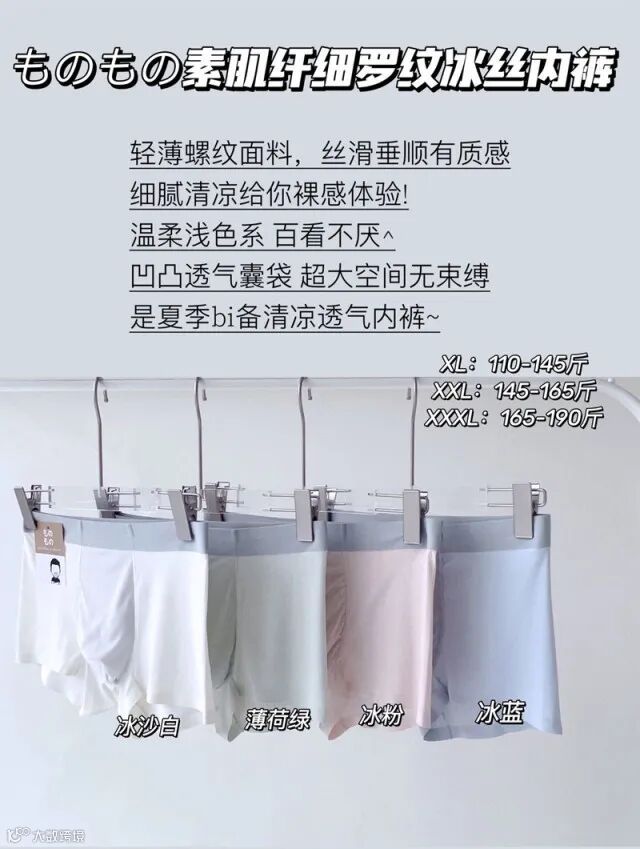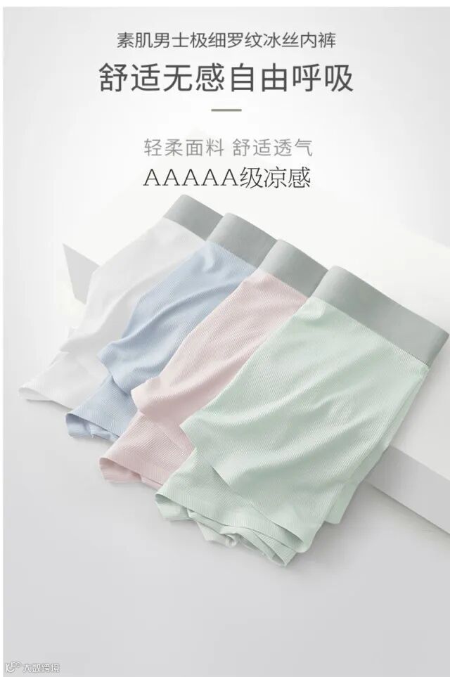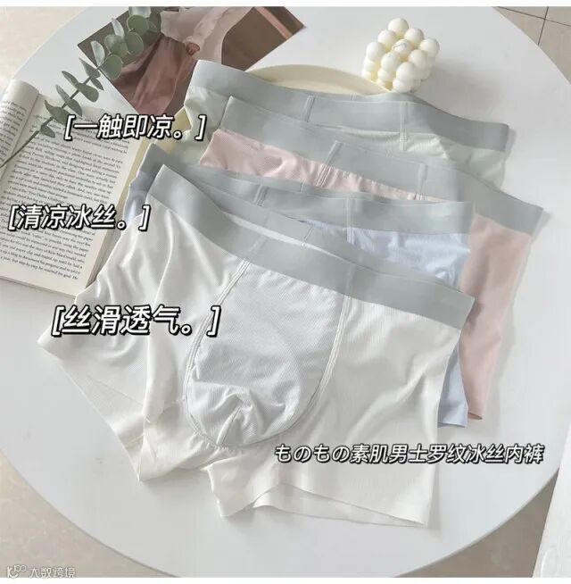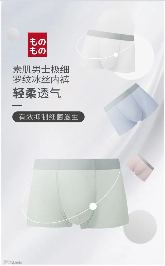 【粉丝群补贴】ものもの素肌男士极细罗纹冰丝内裤四条装 原价:119元 粉丝群补贴价:79元