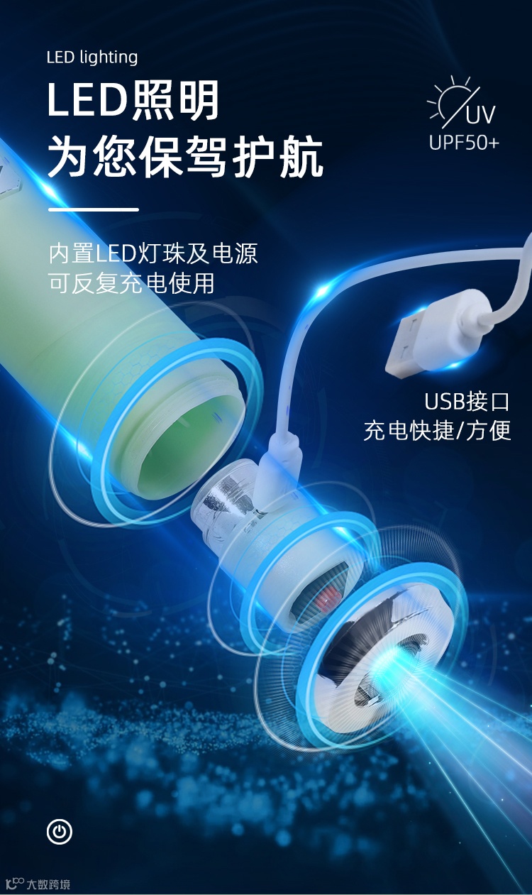 【粉丝群补贴】2023升级钛银全自动晴雨降温伞创意充电照明手柄30骨抗风暴伞 原价:89元 粉丝群补贴价:59元
