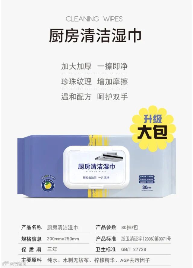 【粉丝群补贴】物洁美 厨房湿巾厨房去污去油湿巾80抽*3包20Cm×25cm 原价:39元 粉丝群补贴价:19.9元