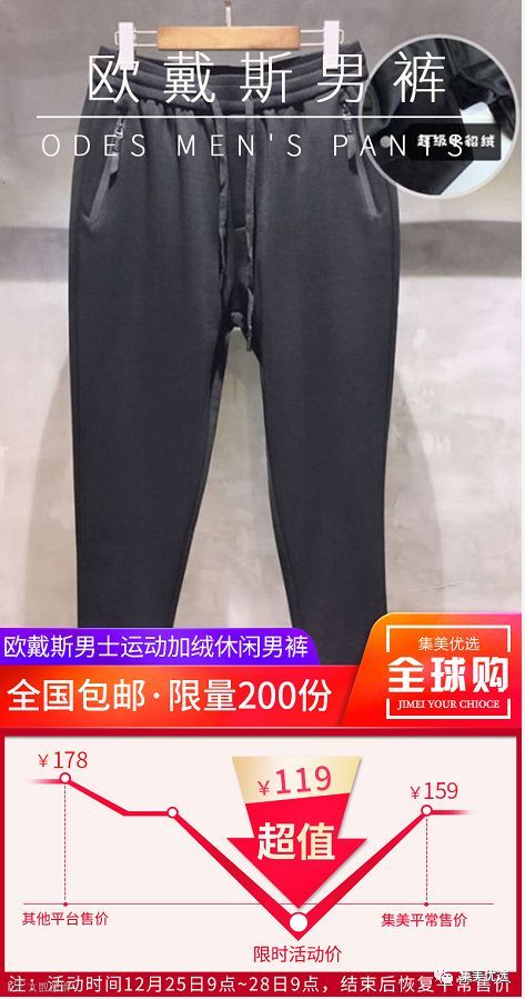 【福利团购】欧戴斯2019新款男士运动加绒休闲男裤宽松加厚冬款