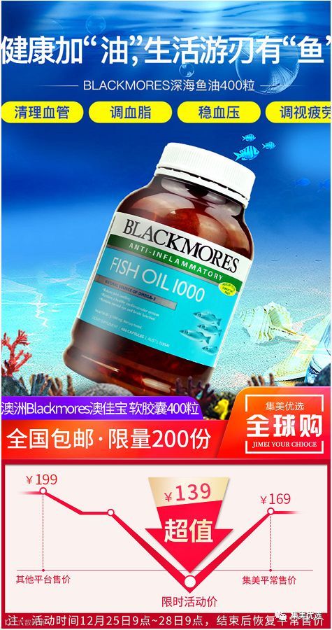 Blackmores澳佳宝深海鱼油提取自鱼体的脂肪部分,是对人体健康有益的多不饱和脂肪酸,而不饱和脂肪酸长期食用能够降低血脂和胆固醇,预防三高,保护心脑血管健康。