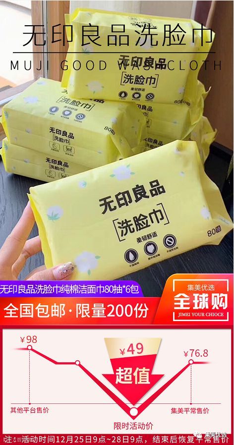 【福利团购】无印良品一次性洗脸巾80抽*6包