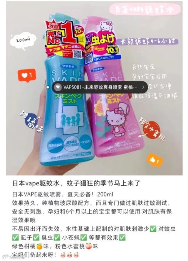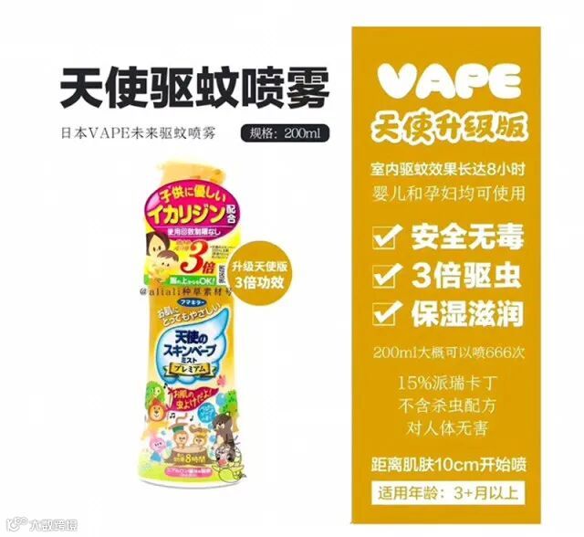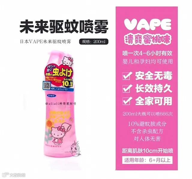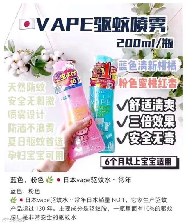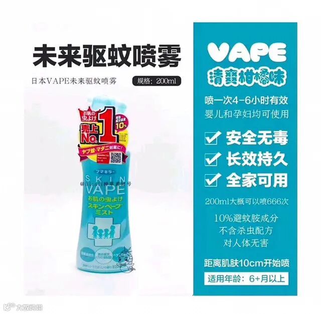 【粉丝群补贴】日本VAPE未来驱蚊水200ml/瓶 原价:39元 粉丝群补贴价:19.9元 主要成分是驱蚊胺