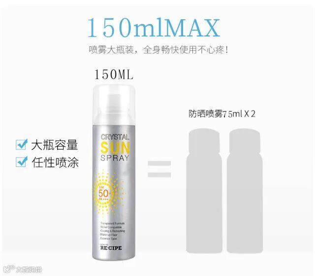 【粉丝群补贴】韩国RECIPE 玥之秘 水晶防晒150ml 原价:79元 粉丝群补贴价:39.9元