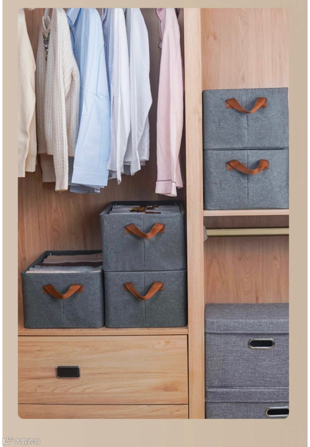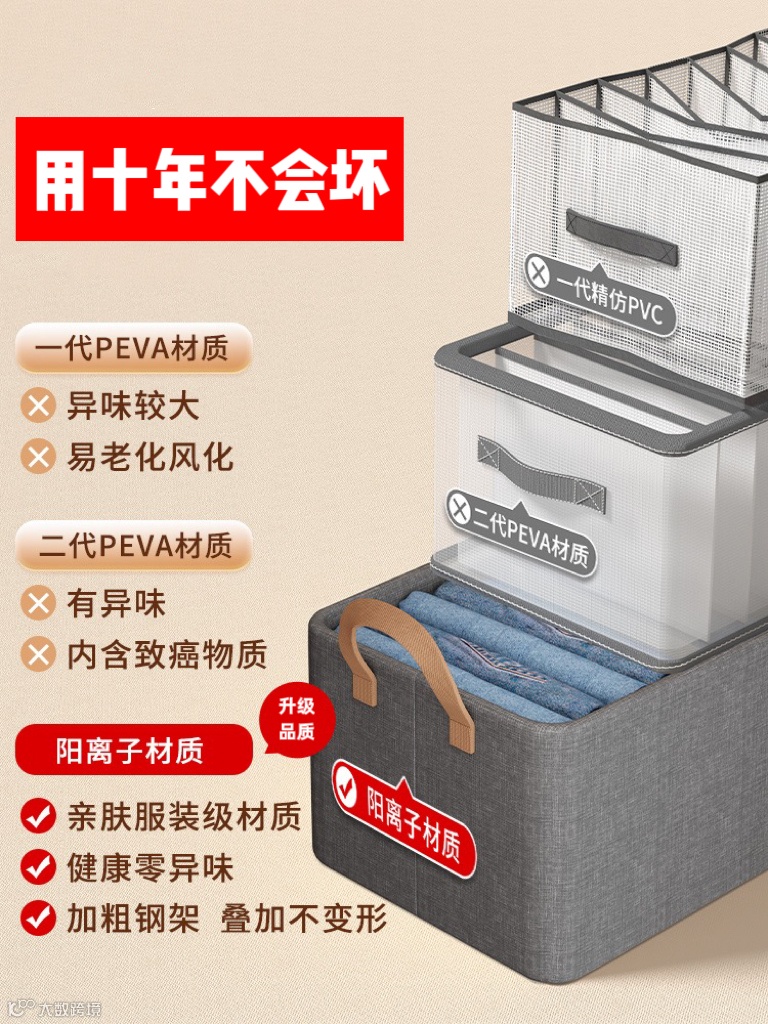 不用时可折叠收纳,不占空间,使用场景广,25L大容量,可叠放T恤约25件,牛仔裤约10条,中薄款外套约3~5件。