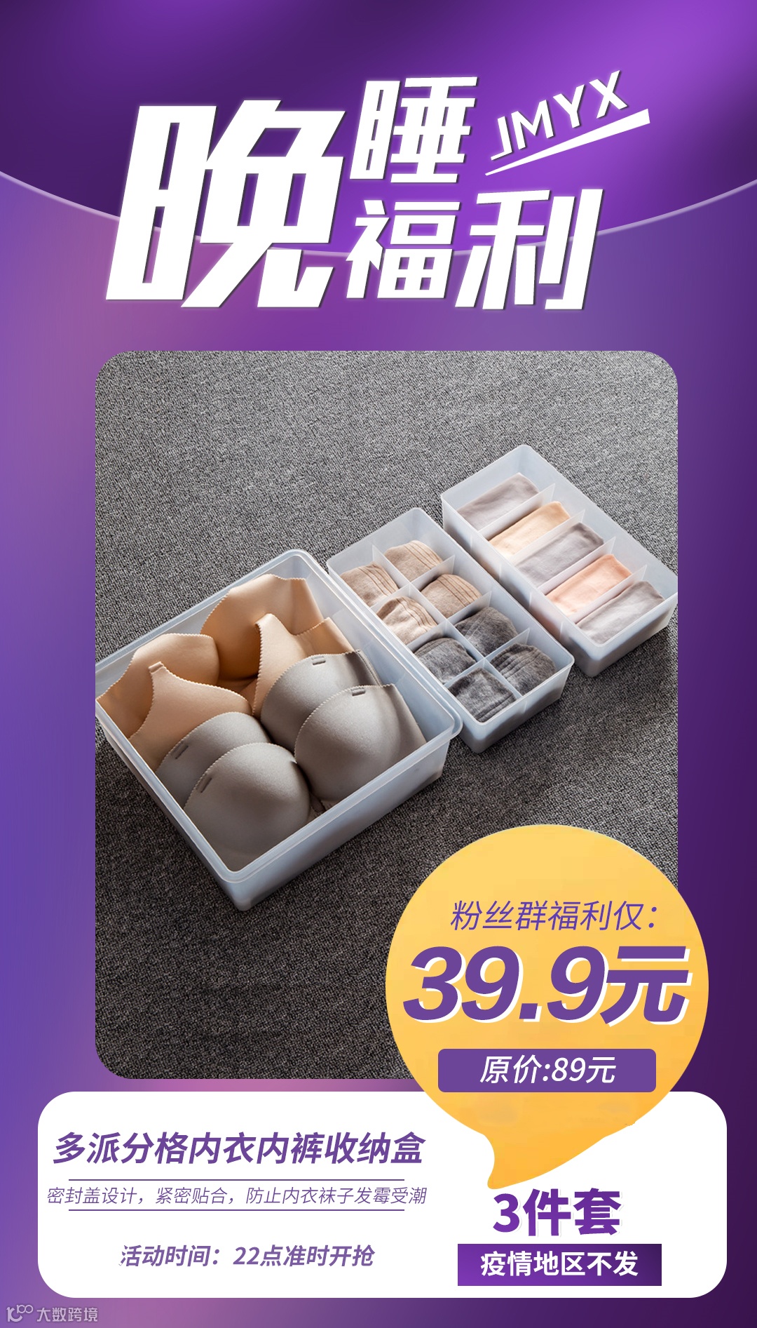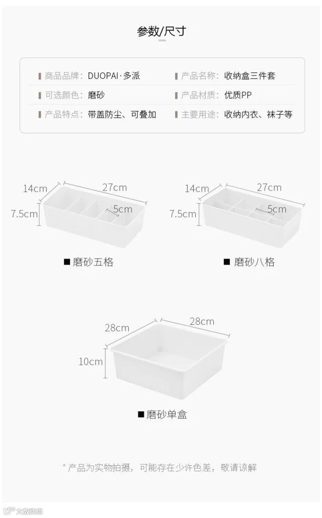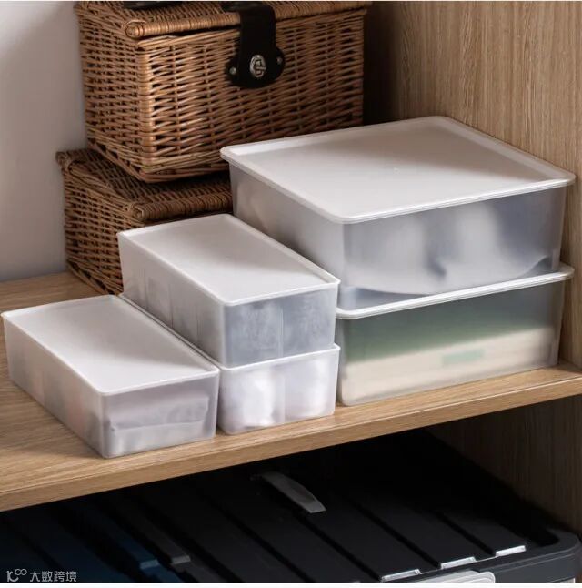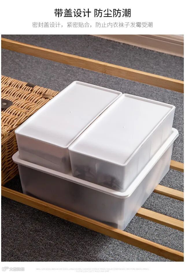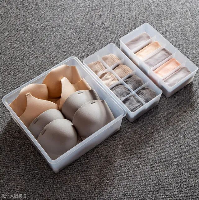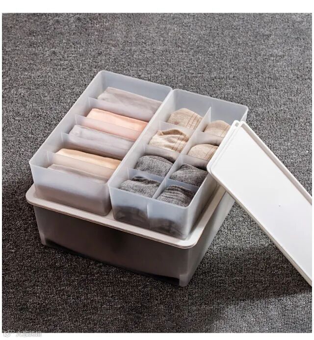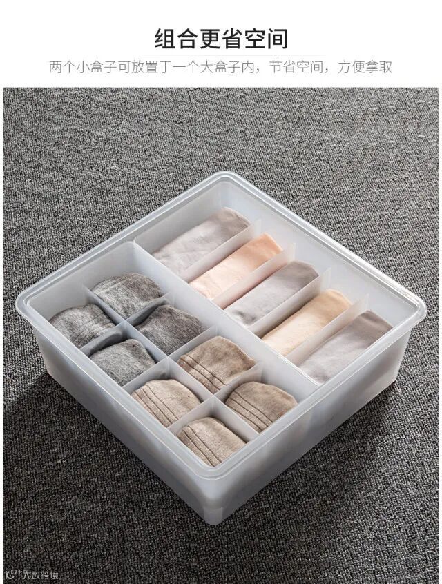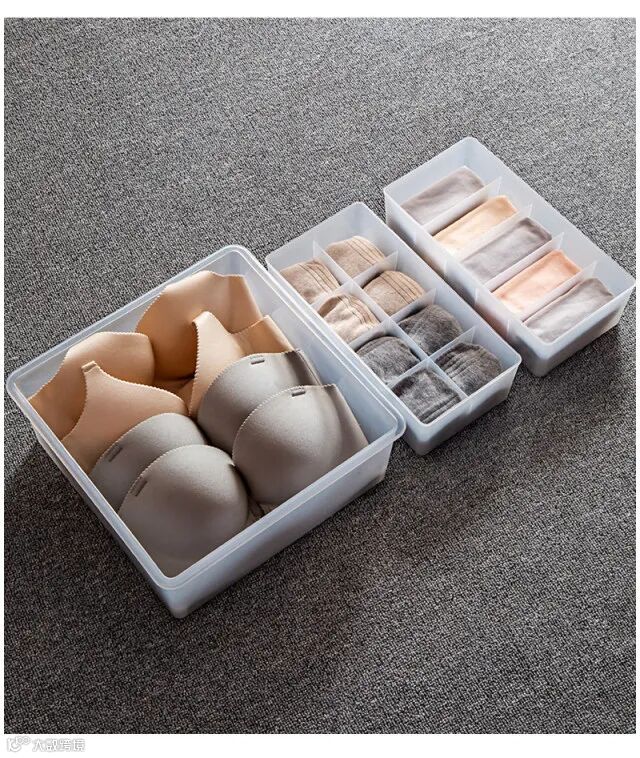 【粉丝群补贴】多派分格内衣内裤收纳盒家用袜子塑料桌面抽屉整理盒带盖3件套 原价:89元 粉丝群补贴价:39.9元