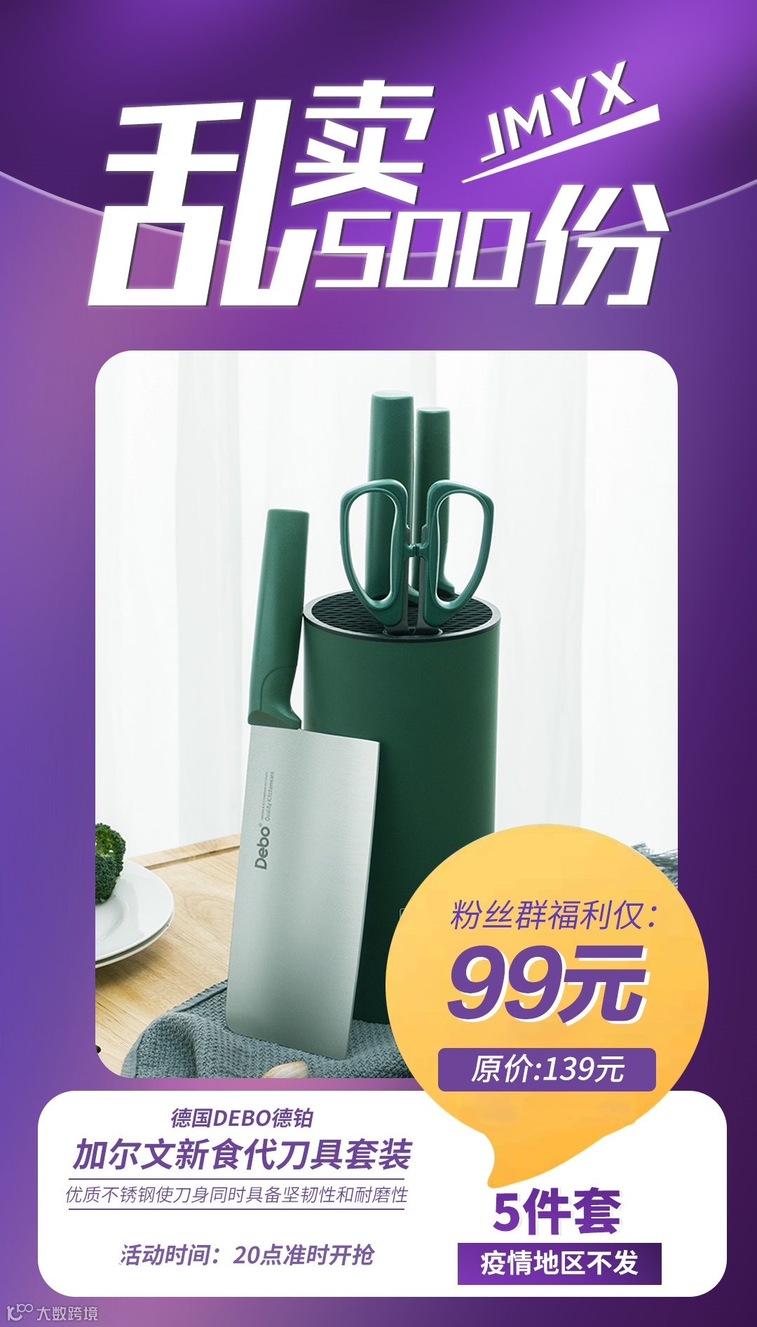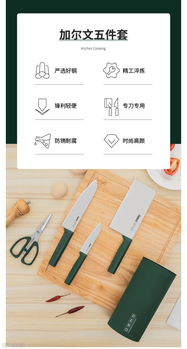 【粉丝群补贴】德国Debo德铂 加尔文新食代刀具套装5件套 原价:139元 粉丝群补贴价:99元