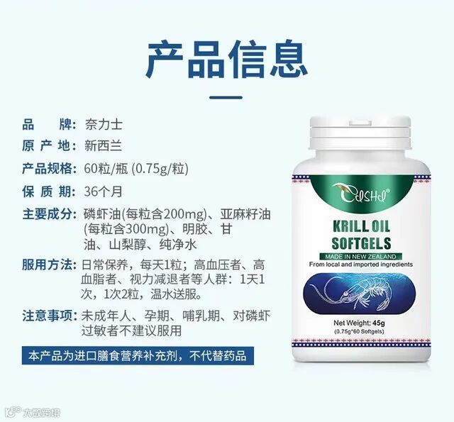 【粉丝群补贴】奈力士磷虾油软胶囊45g*1瓶 原价:159元 粉丝群补贴价:119元