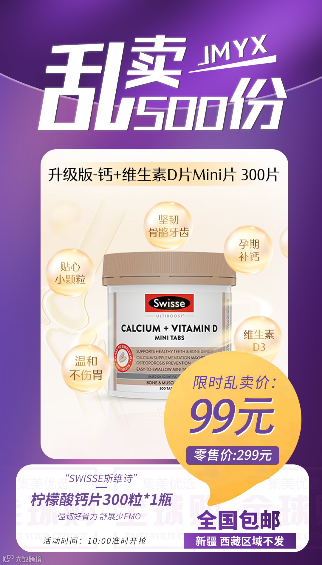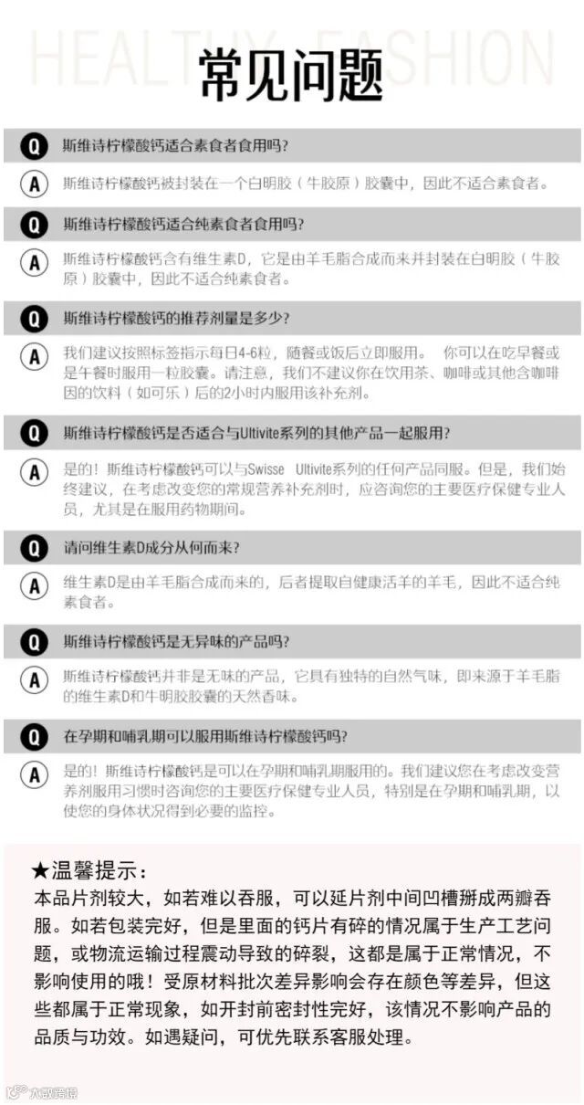 【粉丝群补贴】Swisse斯维诗柠檬酸钙片300粒*1瓶 原价:299元 粉丝群补贴价:99元