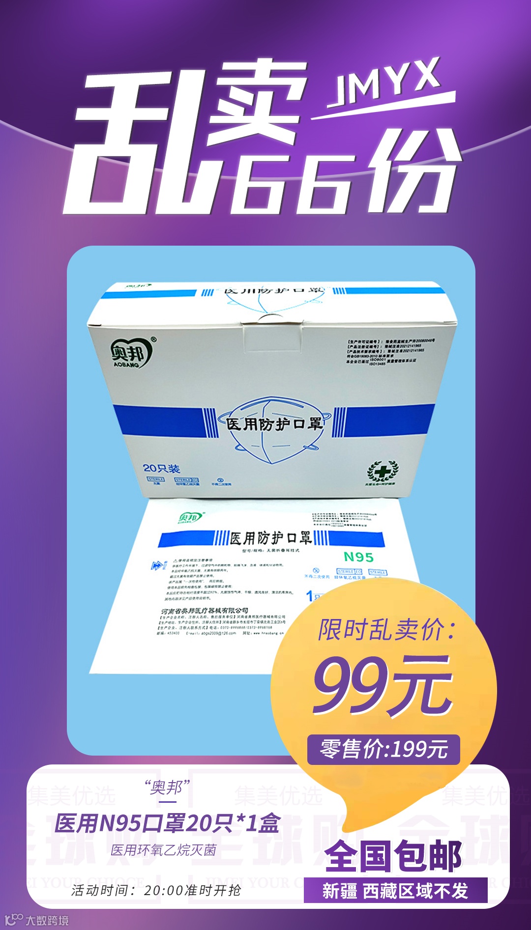 【粉丝群补贴】 奥邦 医用N95口罩20只*1盒