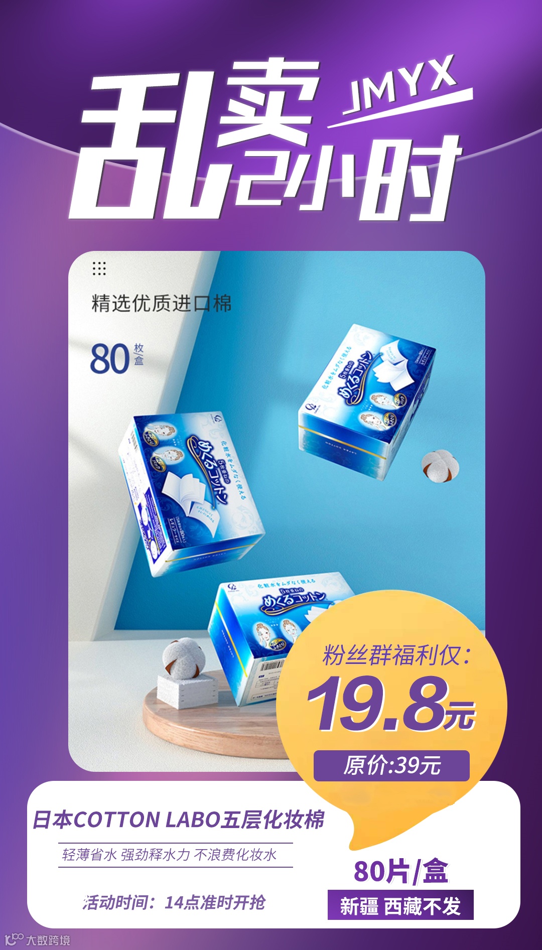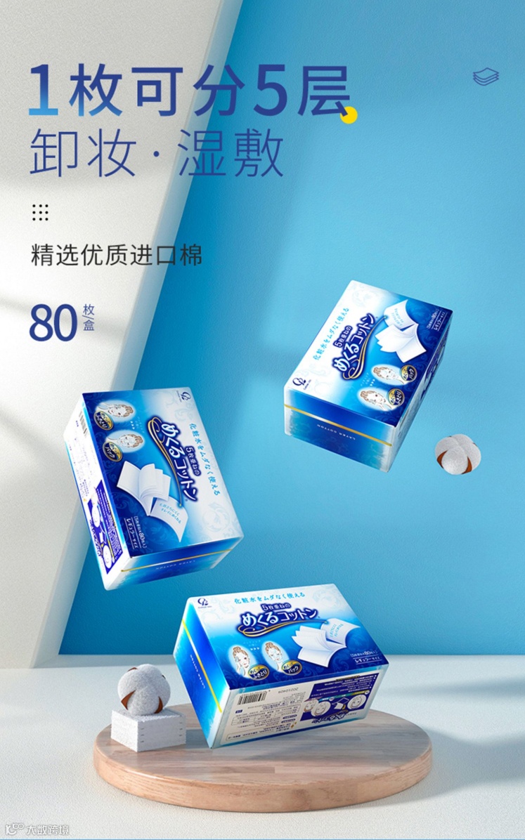 日本Cotton Labo五层化妆棉脸部卸妆湿敷省水100%纯棉卸妆棉80片/盒 原价:39元 粉丝群补贴价:19.8元