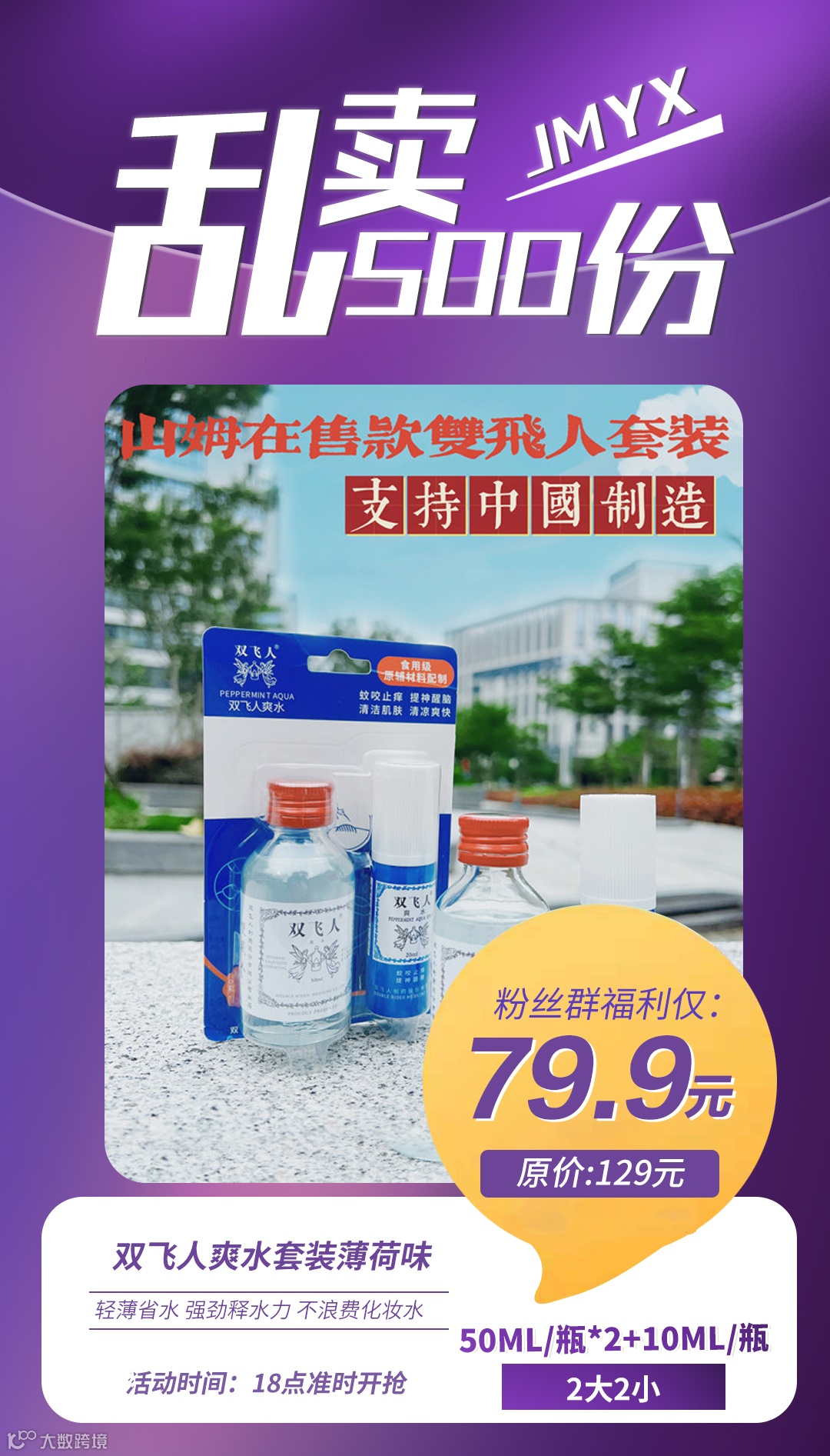 双飞人爽水套装薄荷味 50ml/瓶*2+10ml/瓶(2大2小) 原价:129元 粉丝群补贴价:79.9元